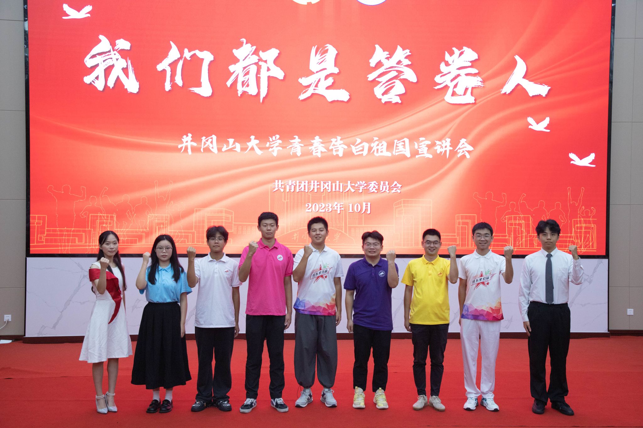 本次“我们都是答卷人”青春告白祖国宣讲会,井大青年们用铮铮誓言和铿锵行动向祖国深情告白,递交一份无愧于祖国、无愧于时代的青春答卷。同学们也纷纷表示,将以青春报效祖国,在这片井冈热土上以青春之我,书写时代答卷,争做堪当民族复兴重任的时代新人。(张晨昕、谢美贞)