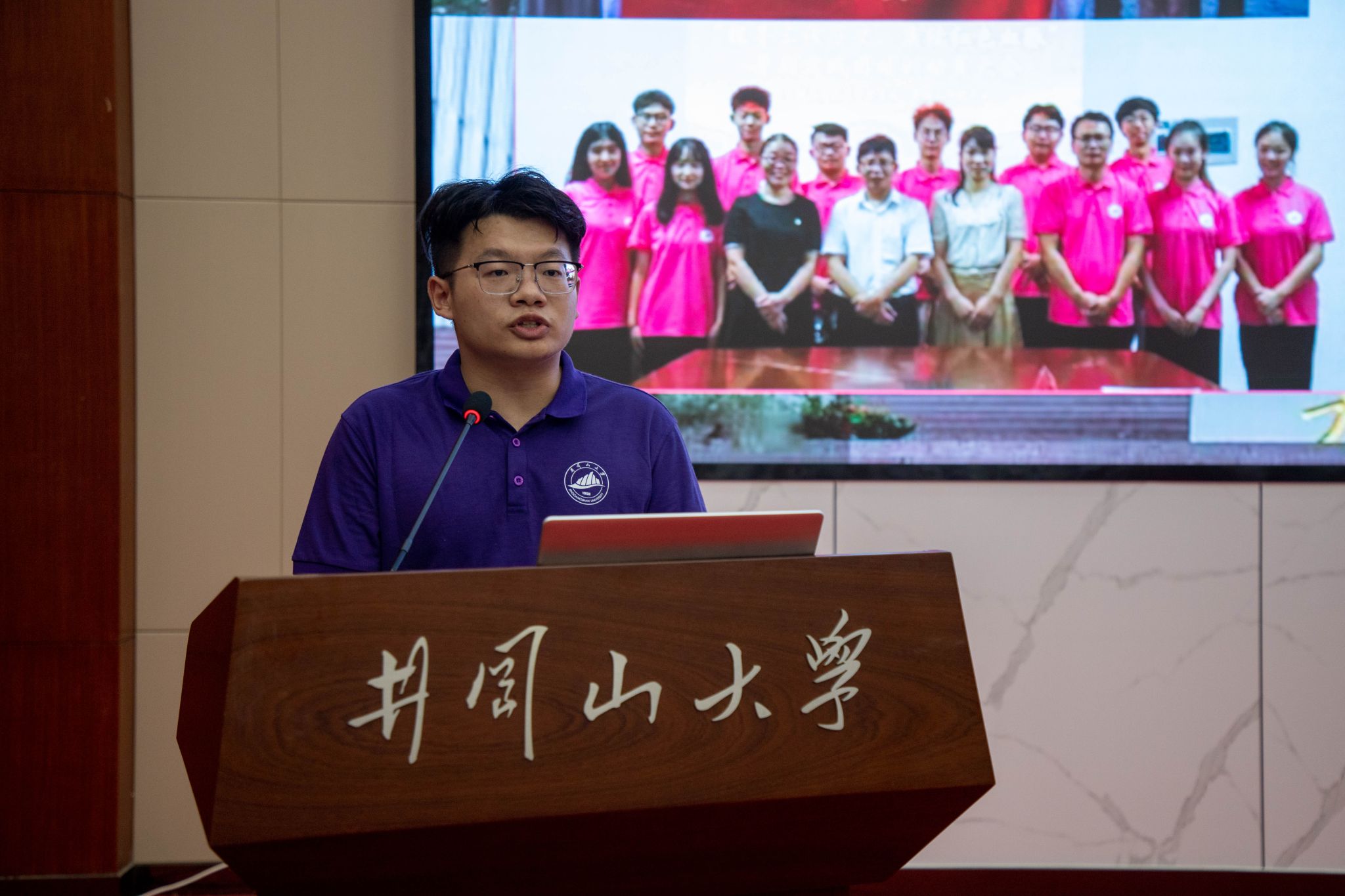 生命科学学院李跃飞同学以《井冈花正红》为题,分享了自己在映山红青年团队的工作经历,回顾团队从映山红繁育技术创新的成功实践和红色基因传播模式的创新到助力省级劳动教育示范课堂和乡村振兴的不凡历程,指出该团队计划建立映山红产业联盟,传承红色基因,为党育人、为国育才,堪当起民族复兴的重任。