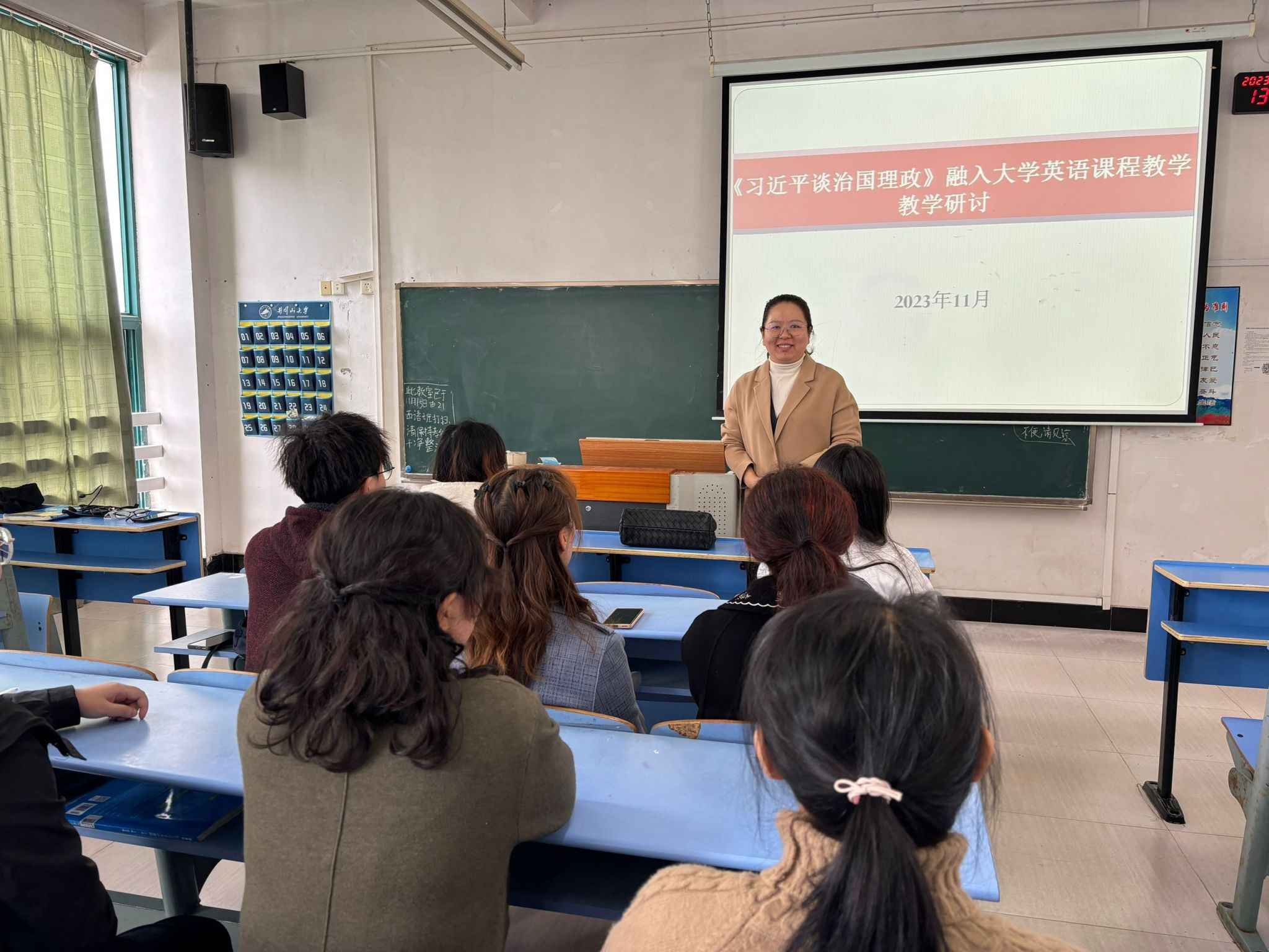 11月19日下午,一场以《习近平谈治国理政》多语种版重要概念和特色金句融入课程教学为主题的教学研讨会在外国语学院大学英语拓展教研室展开,参与研讨的教师结合新时代”立德树人“根本任务与公共外语的课程目标,就习近平总书记思想深刻内涵融入大学英语教学的内容选择、融汇途径和教学方法进行热烈讨论,极大更新了老师们对课程思政目标和方法认识。