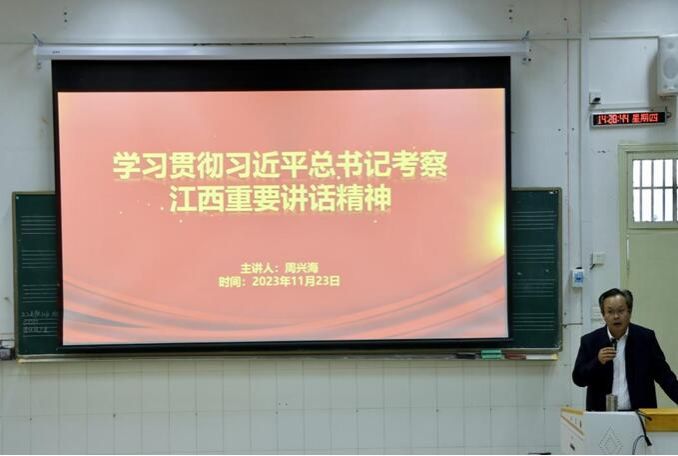 11月23日,艺术学院举行深入学习宣传贯彻习近平总书记考察江西重要讲话精神专题学习,学院党委书记周兴海为150余名学院师生代表宣讲习近平总书记考察江西的重要讲话精神。