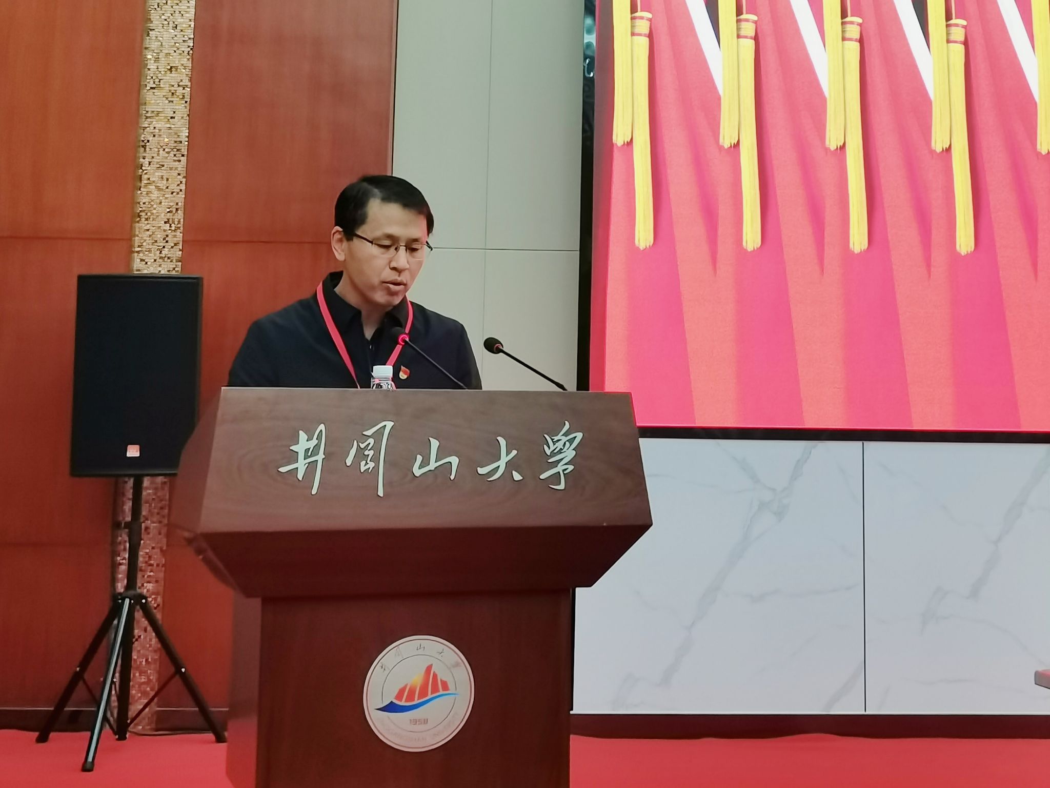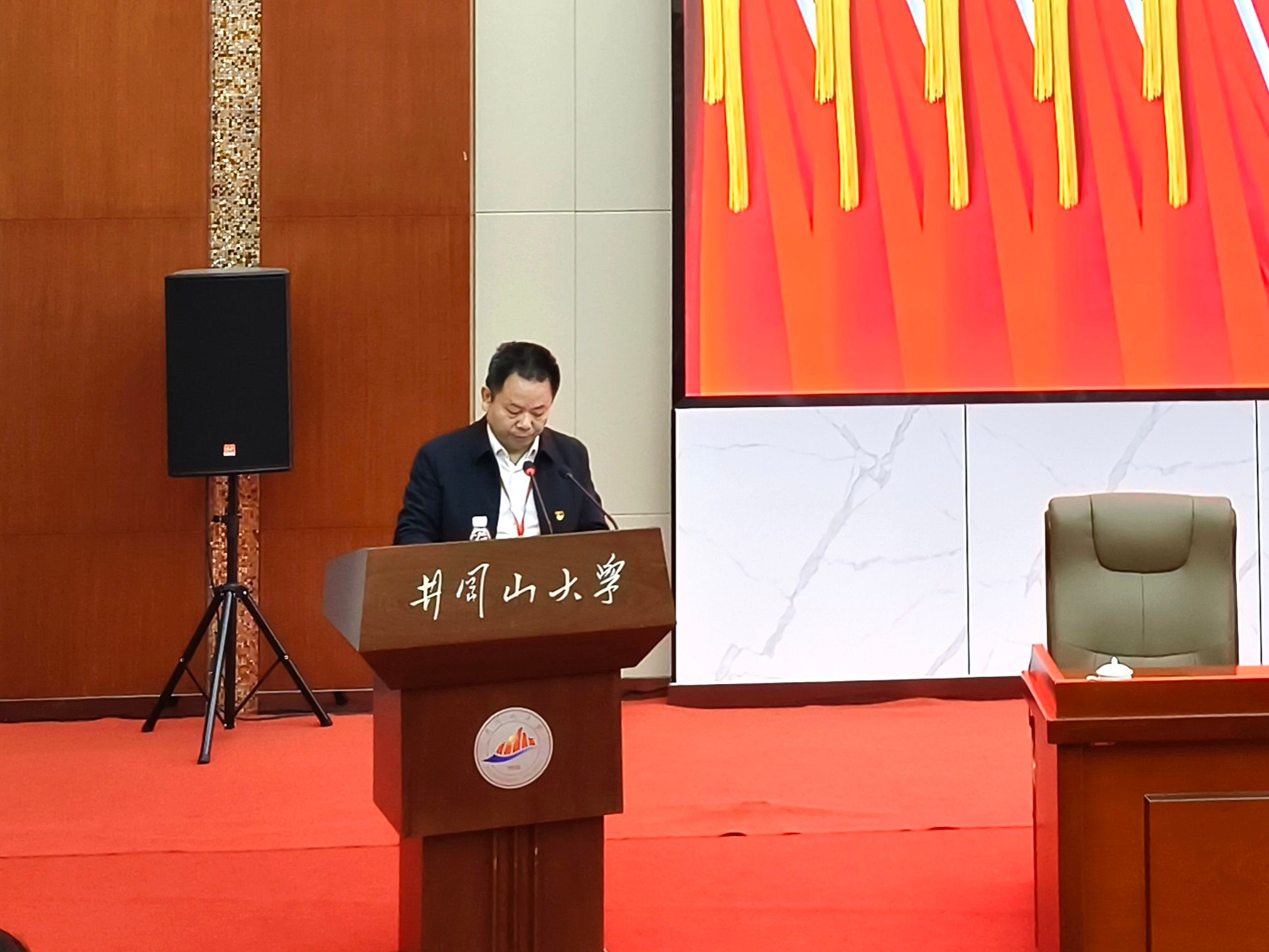 冷明代表学校党委向大会致辞。他对本次大会的召开表示祝贺,充分肯定化学化工学院在人才培养、服务地方和校企合作上作出了积极贡献,并对即将产生的新一届化学化工学院党委班子提出三点希望:一是要加强党的全面领导,始终把政治建设摆在首位;二是要夯实基层基础,锻造坚强有力的党组织;三是要加强和改进思想政治工作,培养能堪大任的时代新人。