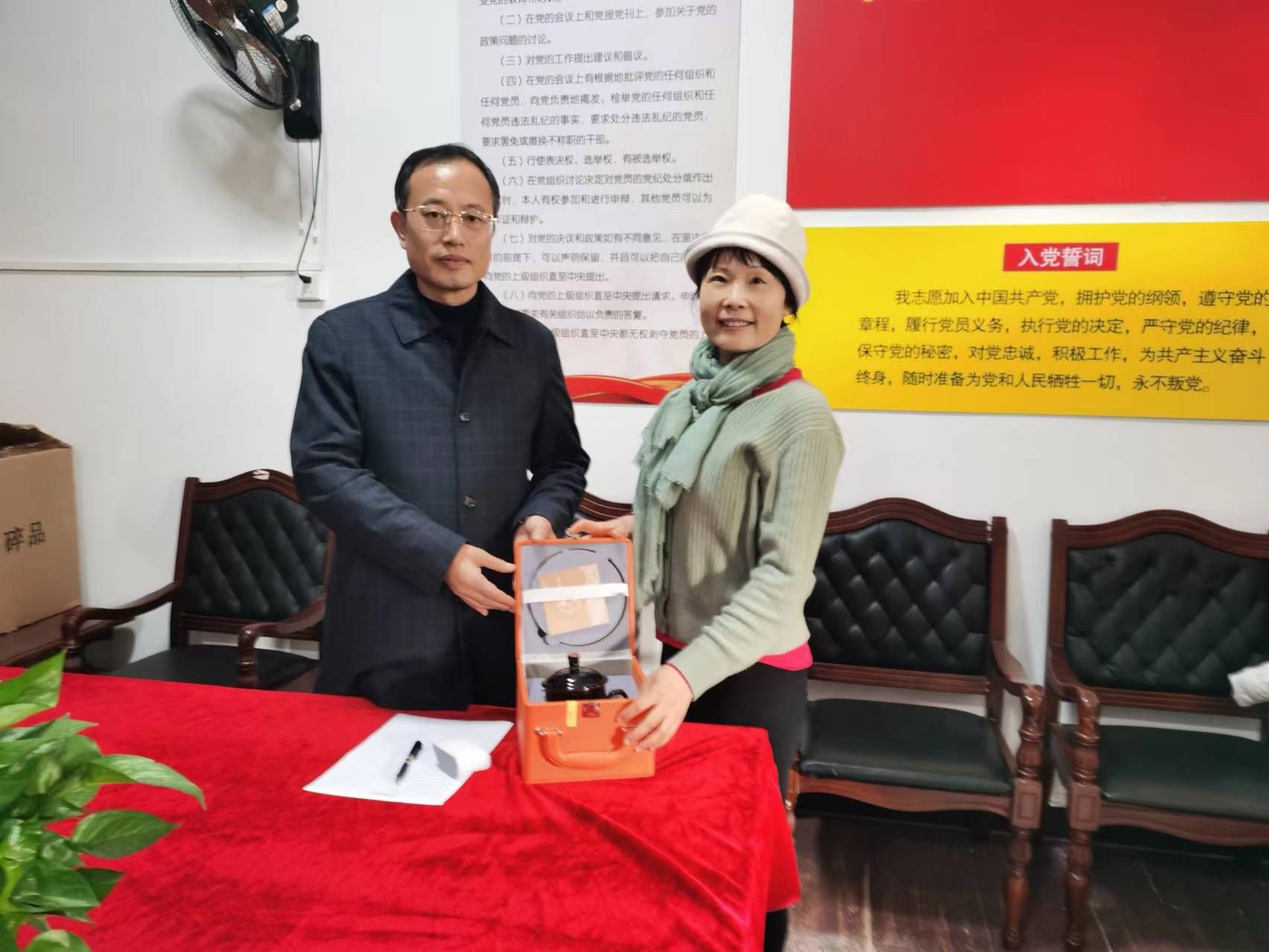 1月17日,校工会主席张霭云为退休教职工—建筑工程学院教务科干事殷劲松颁发纪念品,张霭云代表学校工会对殷劲松教师光荣退休表示衷心祝贺,感谢她为学校的建设发展作出的贡献,希望她退休不褪色,继续关心关注并支持学校的改革发展。