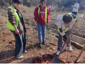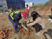 植树现场,志愿者们精神饱满,干劲十足。大家扶正树苗、挥锹培土、填土夯实,分工明确,团结协作。植树过程中,社区居民与志愿者们亲切交谈,一起分享植树经验,并在卡片上写下寄语,给树苗挂上专属“身份牌”。志愿者们辛勤的汗滴滑入满载希望的土壤中,他们化身园丁,用自己的双手种下一整片春天。经过志愿者们一下午的努力,数棵树苗在山坡扎根,为校园再添一抹新绿。大家虽然双手、鞋子上沾满泥土,但体验到了劳动的艰辛与乐趣,更深刻感受到了保护环境、推动可持续发展的重要性。
