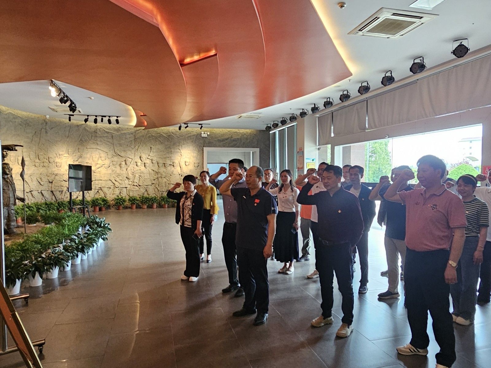 活动最后,怀着对革命烈士的深切缅怀和敬仰,全体党员面向党旗,在党委书记罗曙琼的领誓下,举起右拳,庄严宣誓,重温入党誓词,铮铮誓言表达了全体党员干部对党的绝对忠诚。