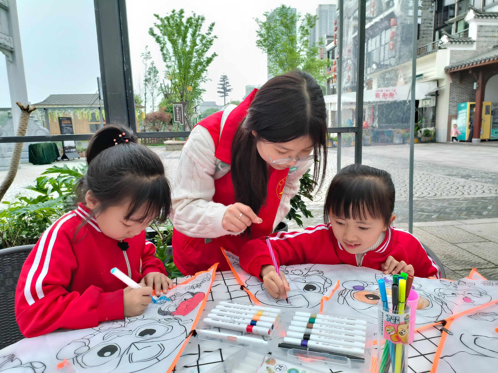 活动在小朋友们的欢声笑语中展开,志愿者们协同幼儿园老师将小朋友们分组进行风筝的彩绘。活动现场,孩子们热情洋溢,用他们稚嫩的小手在风筝上尽情挥洒创意,绘制出五彩斑斓、形态各异的图案,志愿者们则在一旁协助孩子们对图案进行上色。随后,孩子们与自己绘制的风筝合影,记录下这美好的时刻。接着,志愿者们帮助孩子们将自己绘制的风筝放飞,五颜六色的风筝在天空中自由翱翔,仿佛承载着孩子们的美好梦想。活动的最后,孩子们与志愿者们进行了合影留念,并向志愿者们表达了真挚的感谢。