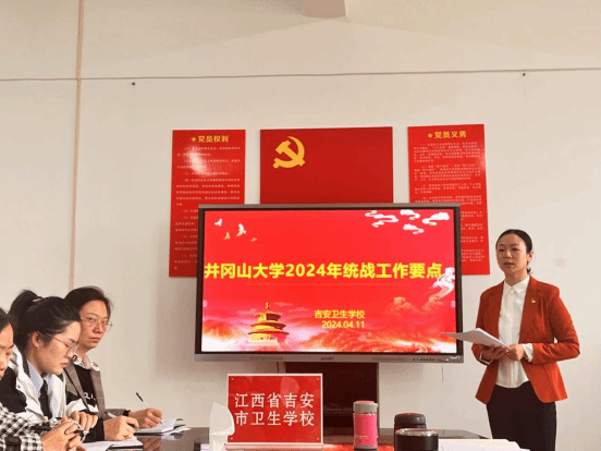 会议还传达了井冈山大学《关于全面开展民族团结进步宣传教育和创建活动的工作提示》、井冈山大学2024年统战工作要点、《吉安卫校2024年开展民族团结进步宣传教育方案》,观看了铸牢中华民族共同体意识和民族团结宣传教育视频。