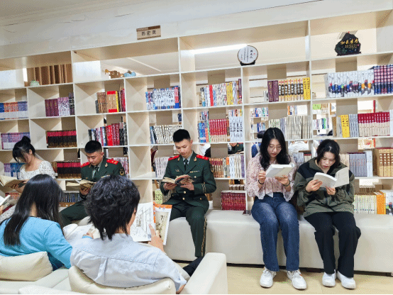 武警官兵与井冈山大学学子们一起阅读、相互探讨,从经典汲取力量,共筑书香军营。武警吉安支队官兵代表为学子们分享了《星火燎原》,《第四次工业革命》等阅读心得。