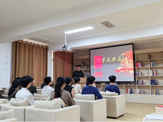 井冈山大学4名学生代表做了主题分享,其中熊远望同学分享了《红星照耀中国》里描写的中国共产党为民族解放而艰苦奋斗和牺牲奉献的精神。姜吉祥同学分享了《云上光辉》中西藏自治区在脱贫攻坚征程中的困难和艰辛。