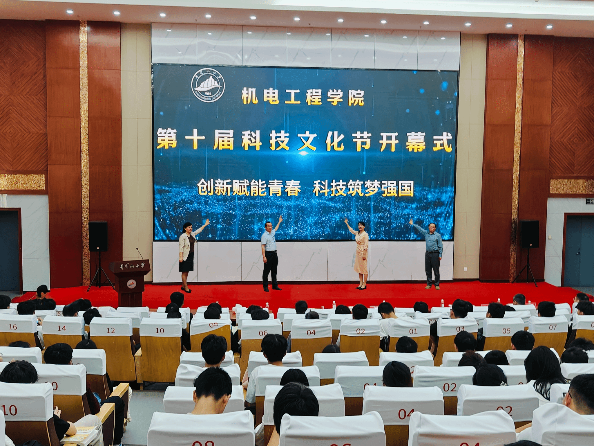 为不断增强学生科技创新意识,进一步提升学生实践技能,激发学生的学习兴趣。4月29日下午,机电工程学院第十届科技文化节在新图书馆北侧报告厅开幕。校党委常委、副校长敖四江出席开幕式并致辞,校团委书记肖晓、学院全体班子成员、各系主任、辅导员及师生生代表共计260余人参加活动。