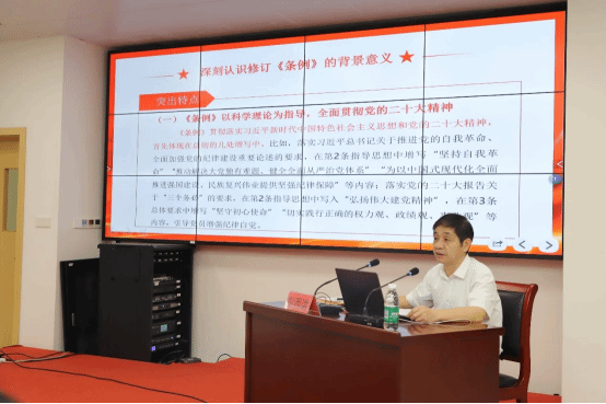 彭西洪以《学习好宣传好新修订的条例 全面抓好条例的贯彻执行》为题从深刻认识修订《条例》的背景意义、准确理解《条例》修订的主要内容、全面抓好《条例》的贯彻执行三个方面深入浅出地上了一堂廉政专题党课。他强调,必须把学习贯彻新修订的《中国共产党纪律处分条例》作为当前和今后一段时期的重要政治任务,以党纪学习教育为契机,坚持集中学习和个人自学相结合,做到原原本本认真学、联系实际深入学,做到熟知精通,学以致用,内化于心,外化于行。要全面抓好《条例》的贯彻执行,切实担负起主体责任和监督责任,及时发现和查处各种违纪违规问题。所有领导干部、广大党员时刻紧绷纪律规矩这根弦,带头讲政治、守规矩,心有所畏、言有所戒、行有所止。