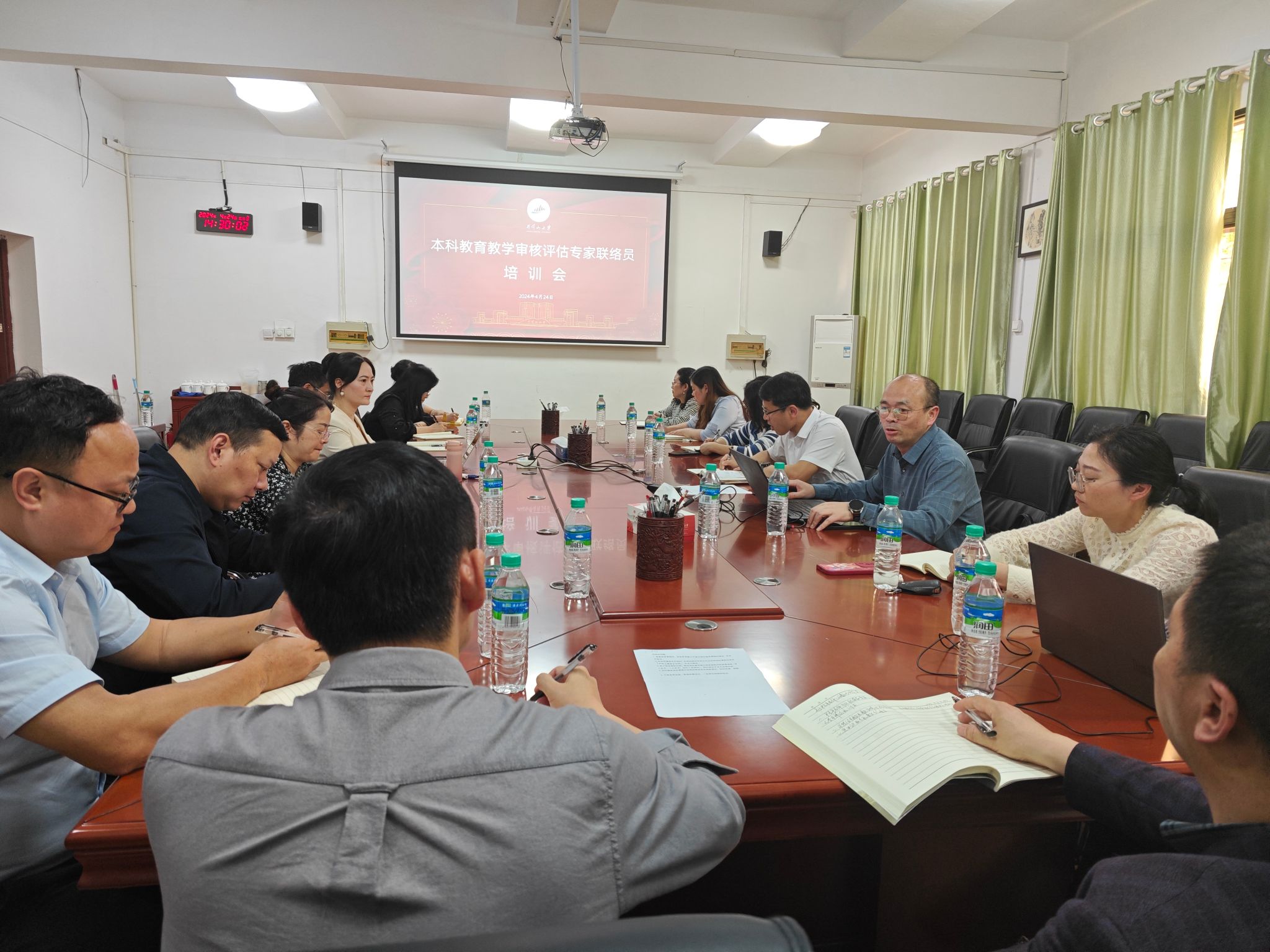 为更好地迎接本科教学工作审核评估,进一步提高联络员工作能力与水平,做好相关准备工作,4月24日下午,学校在4栋215召开本科教育教学审核评估专家联络员培训会,党委常委、副校长冷明出席并讲话,专家联络员,评估相关工作组人员及评建办相关人员参加。