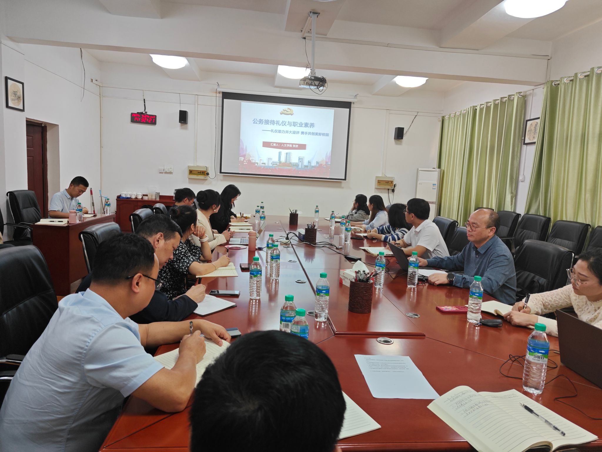 本次培训邀请了人文学院贺欣老师以《公务接待礼仪与职业素养》为题进行辅导。会上还针对听(看)课、访(座)谈等具体工作流程和相关的注意事项进行了详细培训,确保联络员们对各项工作的执行标准有清晰的认识和准备。与会人员就联络工作中的细节问题进行了充分的讨论和交流。(文图:黄秀兰,审核:黄族豪)