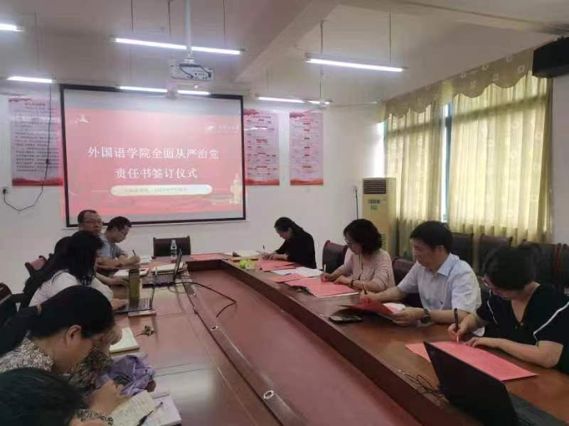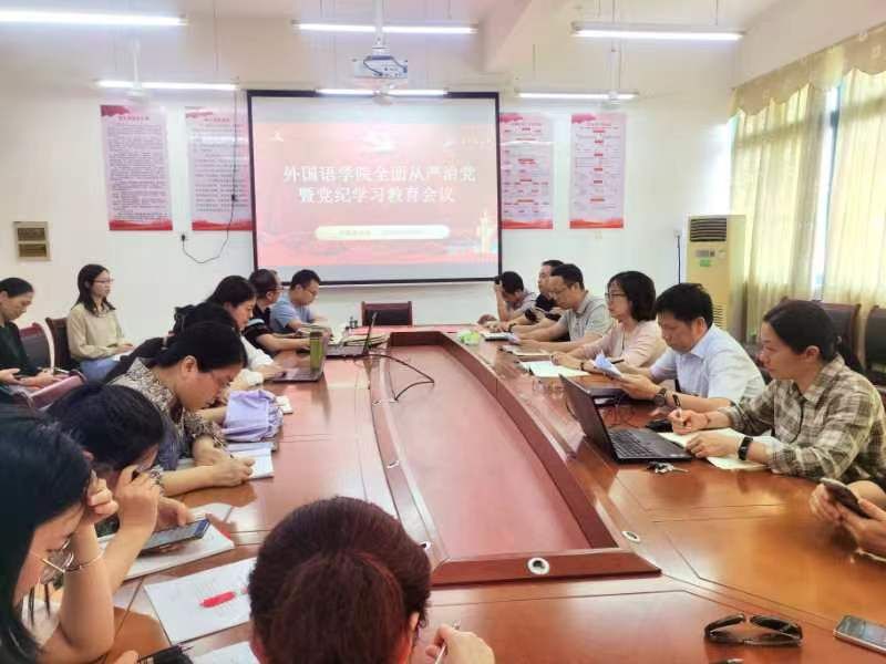 为了不断推进全面从严治党向纵深发展,5月16日下午,外国语学院党委召开全面从严治党暨党纪学习教育会议,党委班子成员、全体教工党员参加。