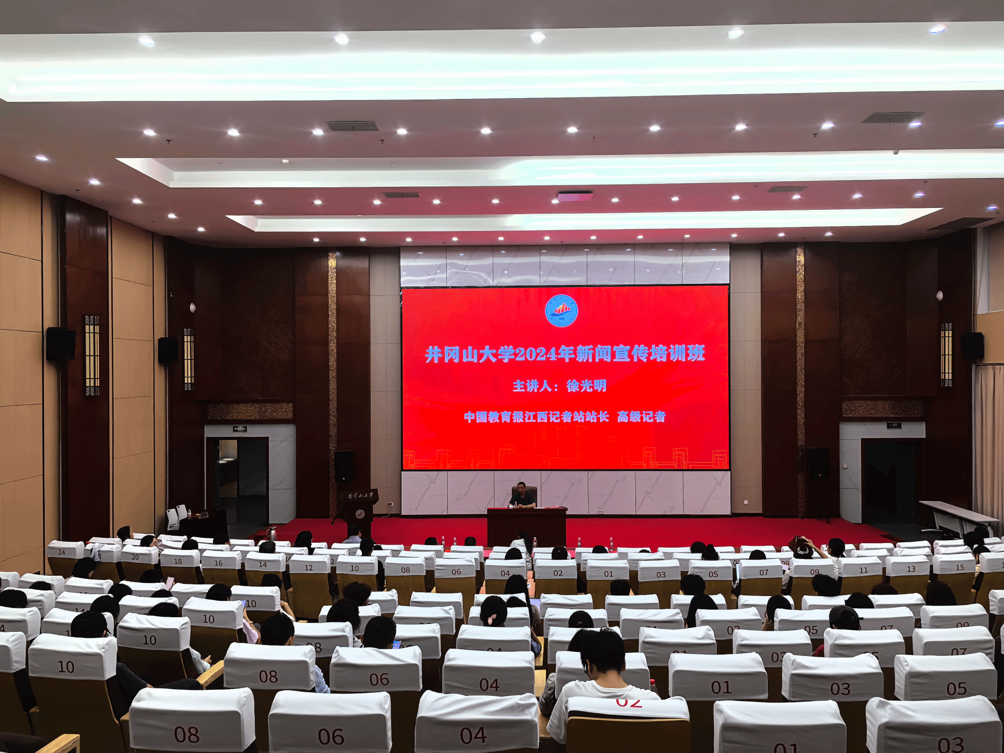 为提升我校师生的新闻宣传意识和新闻写作素养,5月22日晚,我校特邀中国教育报江西记者站站长、高级记者徐光明在新图书馆北侧学术报告厅开展主题为“提高媒体素养 讲好教育故事”的专题讲座。校党委宣传部有关负责人、全校宣传战线的有关师生代表以及人文学院新闻系师生共同聆了听讲座。