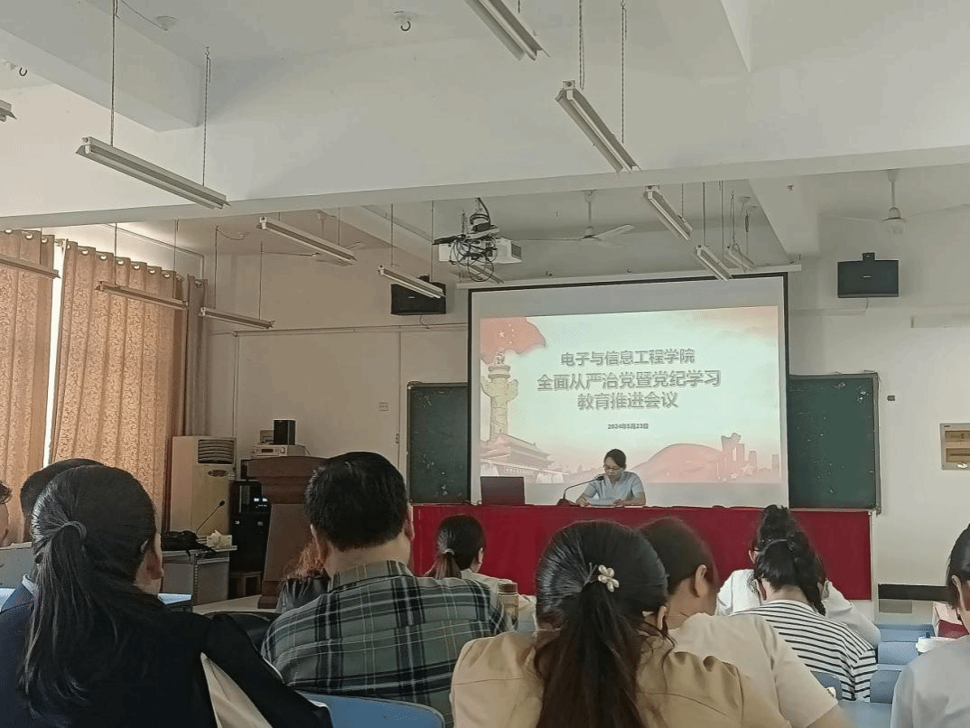 为进一步强化全体党员的纪律意识和规矩意识,5月23日下午,电子与信息工程学院党委召开了全面从严治党暨党纪学习教育推进会。学院全体党委委员和师生党员参加会议。