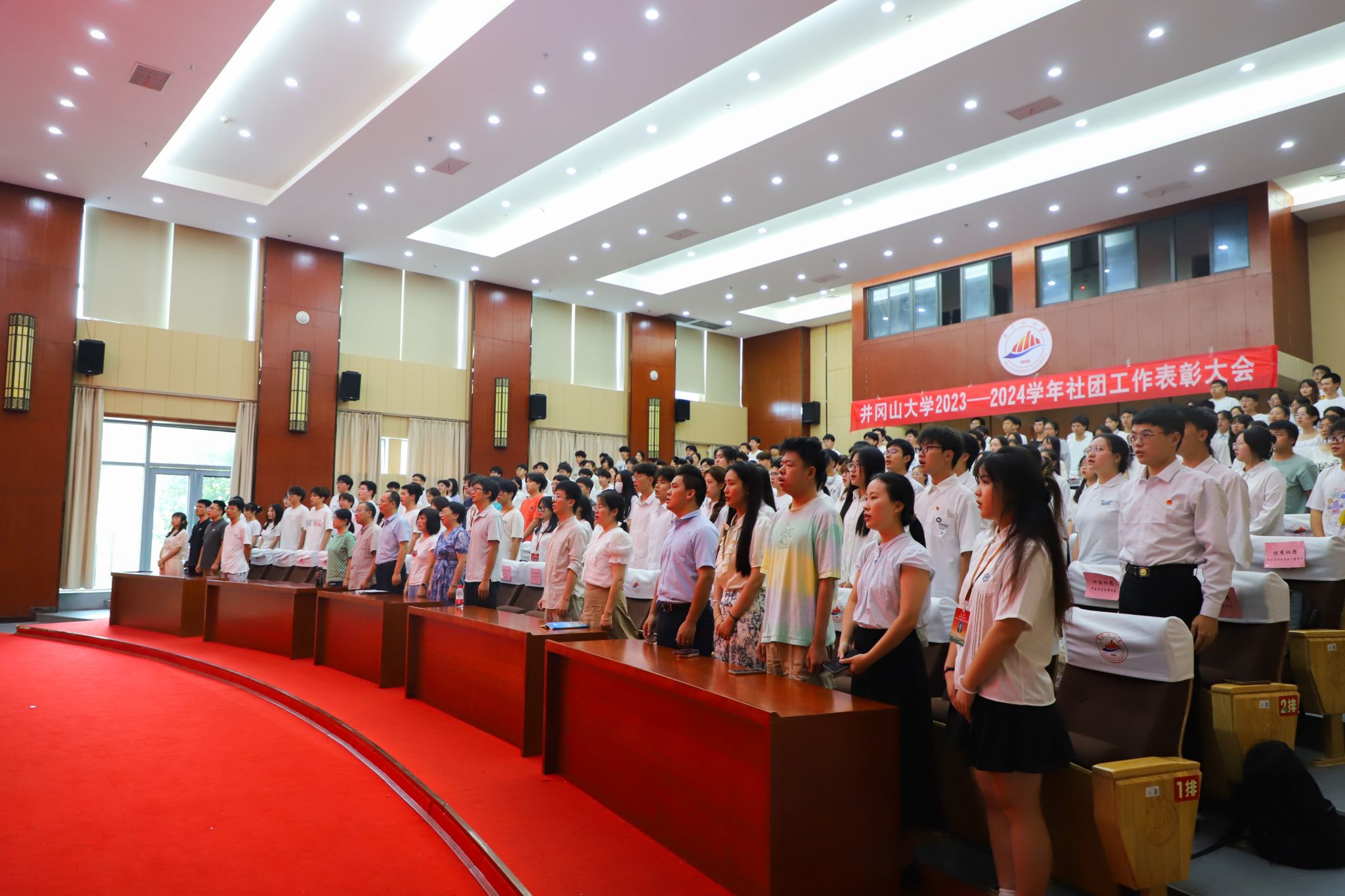 为深入学习贯彻习近平新时代中国特色社会主义思想,加强学生社团的建设与管理,充分发挥社团育人功能,引领青年学生全面发展,6月20日下午,井冈山大学2023—2024学年社团工作表彰大会在新图书馆报告厅举行,校党委常委、副校长敖四江出席并讲话,党委常委宣传部部长肖洪海参加,党委学生工作部、校团委部门负责人,校团委全体成员,各学院团委负责人,各学生社团指导教师,学生社团理事长及社团成员,学生社团管理中心全体成员近300人参加会议。会议由党委学生工作部部长毛金文主持。