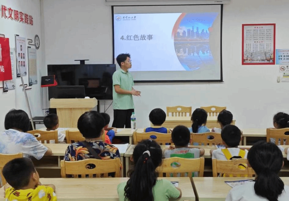 传承红色基因,永葆革命初心。志愿者带着学生们奏唱国歌,并且给他们讲述革命先辈的红色故事,让红色基因得以在孩子们留下种子,让孩子们从小树立正确的价值观、世界观、人生观。