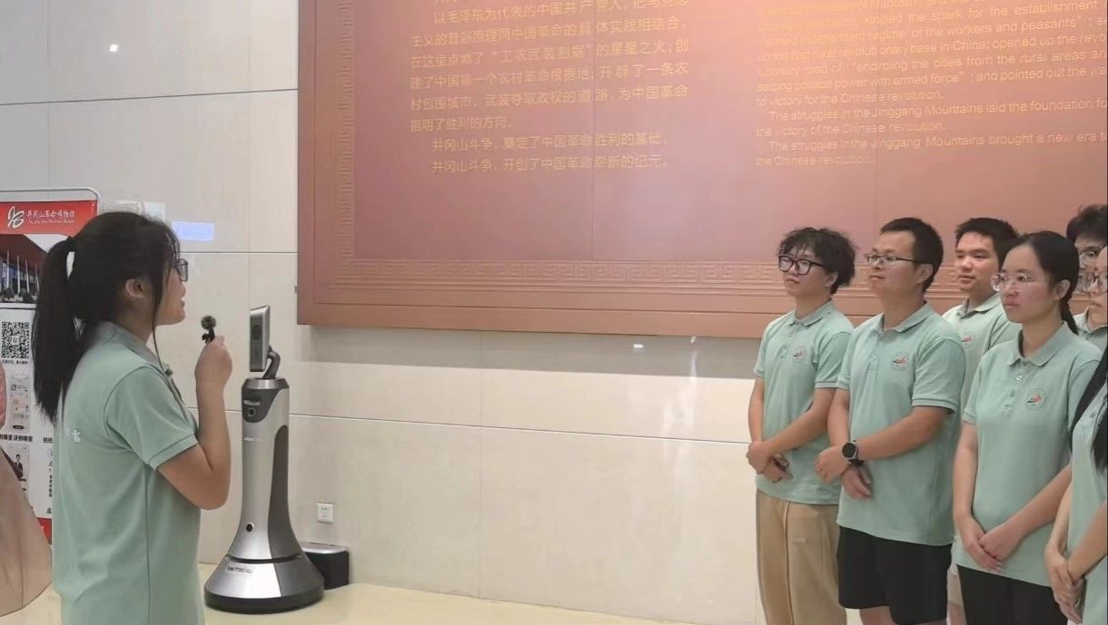为了深入学习贯彻党的二十大精神,传承红色基因,弘扬井冈山精神,外国语学院追“译”井冈暑期社会实践团于7月7日上午9:00赴井冈山革命博物馆和毛泽东故居进行参观学习和外译制调研,对井冈山红色文化对外传播现状进行调研,并用外语讲述红色历史故事,重温那段波澜壮阔的革命历史。