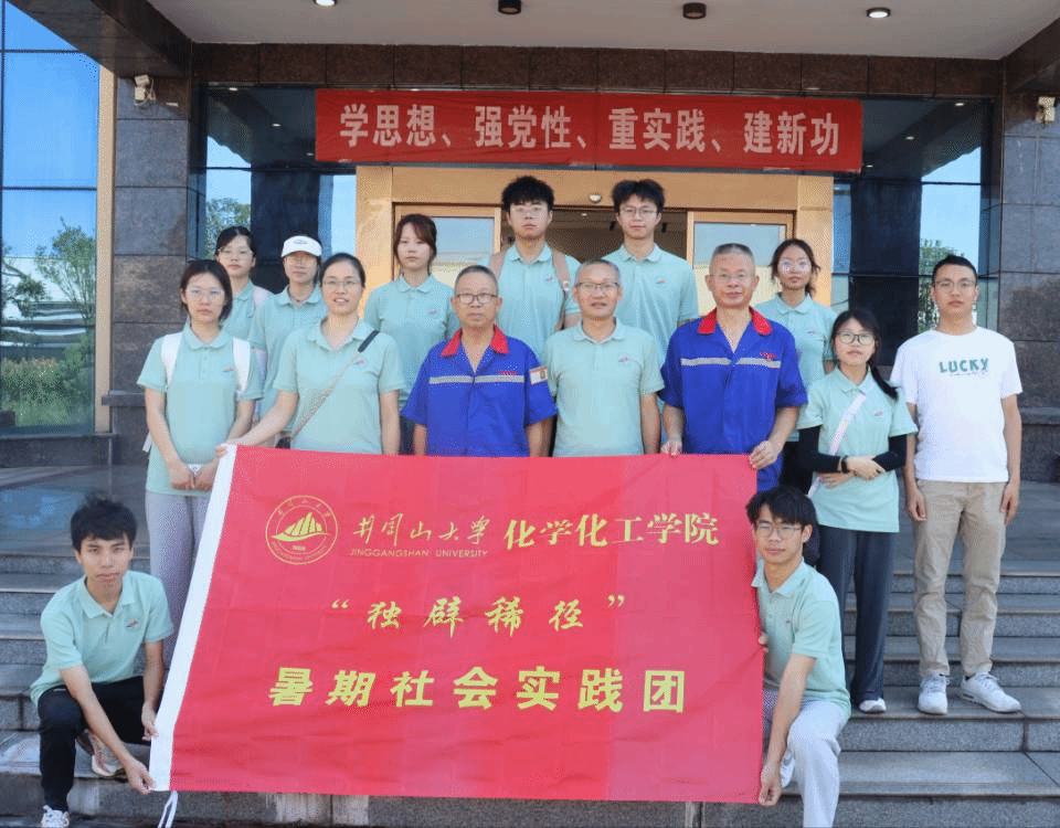 为深入学习贯彻习近平新时代中国特色社会主义思想,深刻认识高水平大学在服务新质生产力中的战略作用,7月5日,井冈山大学化学化工学院“独辟稀径”暑期社会实践团前往吉安市吉水县金诚新材料加工有限公司开展了“追寻红色记忆 传承红色基因 助力企业发展”暑期社会实践活动。