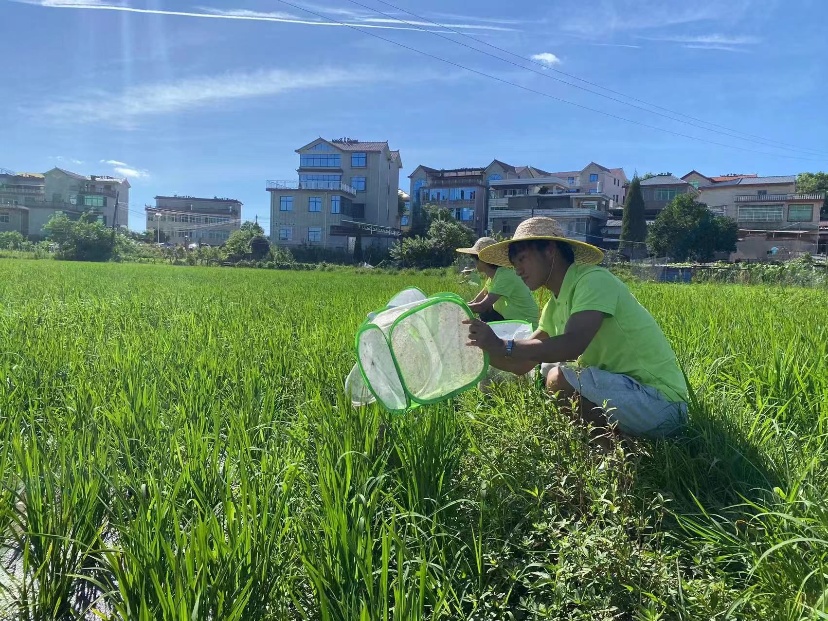 队员们详细了解了不同种类蜘蛛的生态习性和最佳的释放时机与方法,随后在技术人员的指导下,仔细地将蜘蛛放入特定的田间位置,并逐一将纱笼中的蜘蛛释放到稻田。通过本次实践,队员们不仅了解到了丰富的农业科技知识,还更加深了对乡村振兴战略重要性的理解与认识,实践活动充分展示了新时代大学生的社会责任感和实际操作能力,为促进区域农业现代化和农村全面振兴作出积极贡献。
