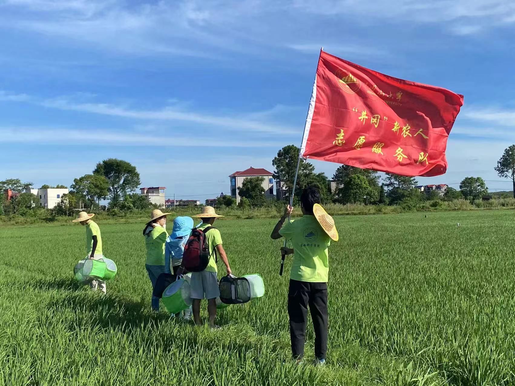 7月18日,井冈山大学“井冈”新农人志愿服务队深入田间展开了一场特殊的实践活动,他们在生命科学学院肖永红教授的指导下,在水稻试验田人工投放天敌蜘蛛,以达到控制害虫的目的。这些稻田采用“蛛联庇禾”技术,以生物防治的方式防控水稻病虫草害,保护农作物,实现水稻零农药种植,支持和促进当地的农业可持续发展。