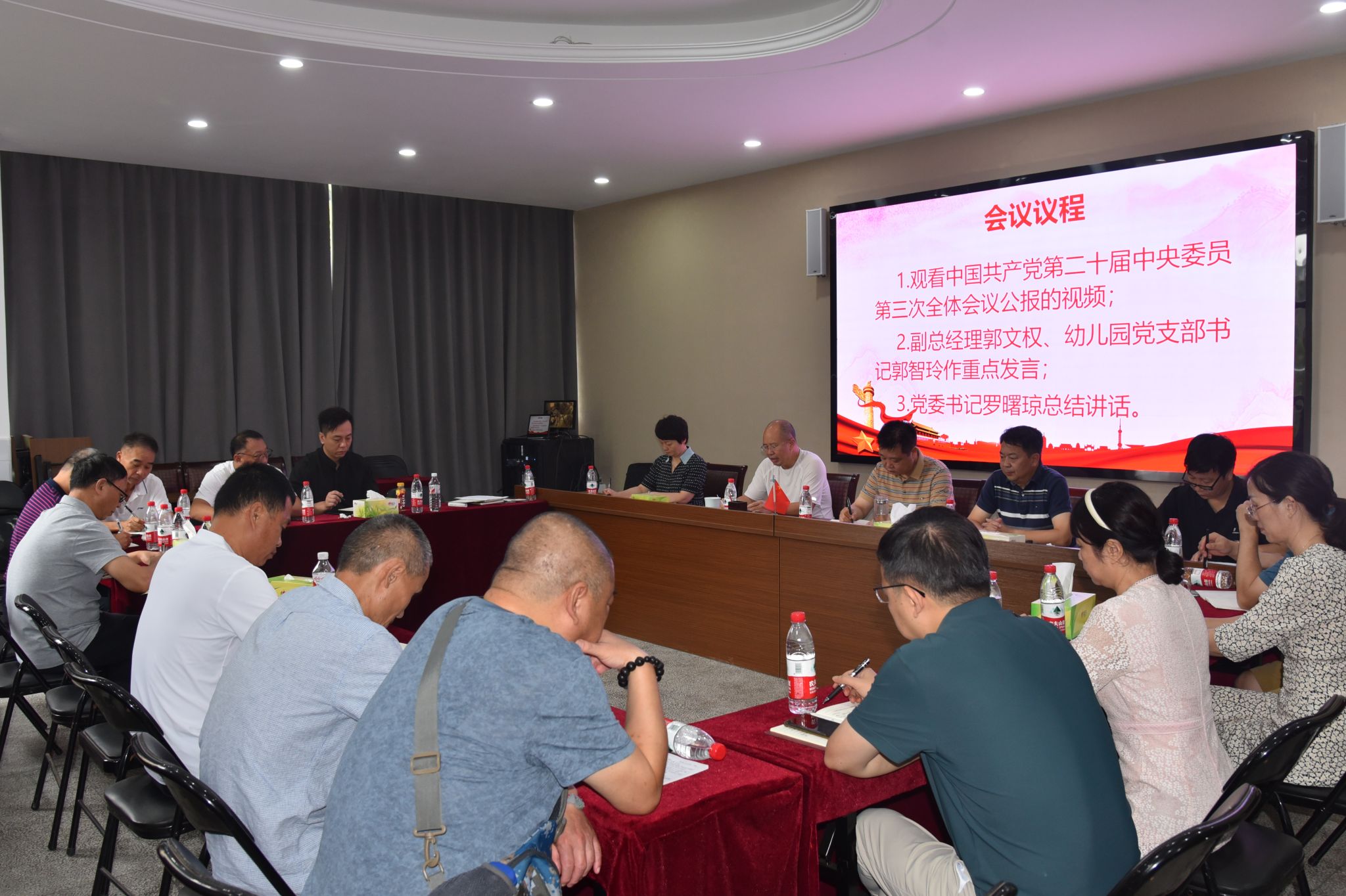 会前,公司党委理论学习中心组全体成员和党员干部认真自学了中国共产党第二十届中央委员会第三次全体会议公报、关于《中共中央关于进一步全面深化改革、推进中国式现代化的决定》的说明和中共中央举行新闻发布会解读党的二十届三中全会精神等相关推荐学习材料。会上,全体人员集体观看了中国共产党第二十届中央委员会第三次全体会议公报的视频;党委书记罗曙琼传达了学校关于专题学习党的二十届三中全会精神的工作提示要求。公司副总经理郭文权、幼儿园党支部书记郭智玲分别结合自身学习体会和工作实际,依次做了重点交流发言。