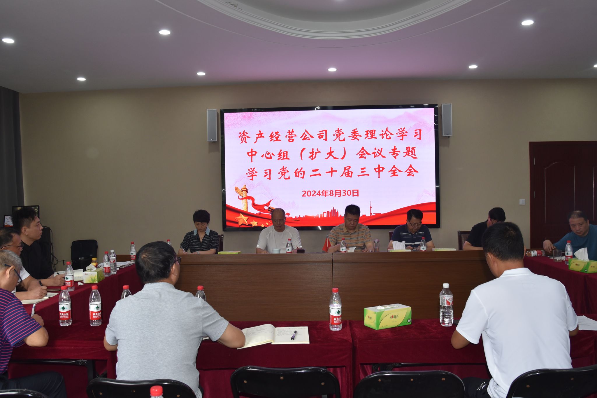 8月30日上午,资产经营公司党委召开2024年党委理论学习中心组(扩大)学习会议,专题学习党的二十届三中全会精神,党委书记罗曙琼主持会议并讲话,公司领导班子成员、科级干部及全体党员参加会议。