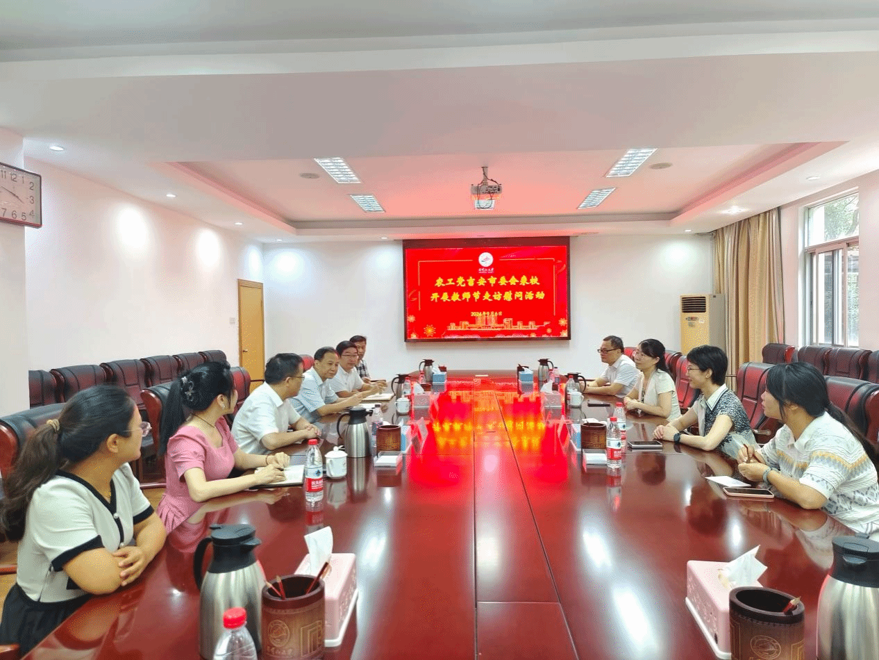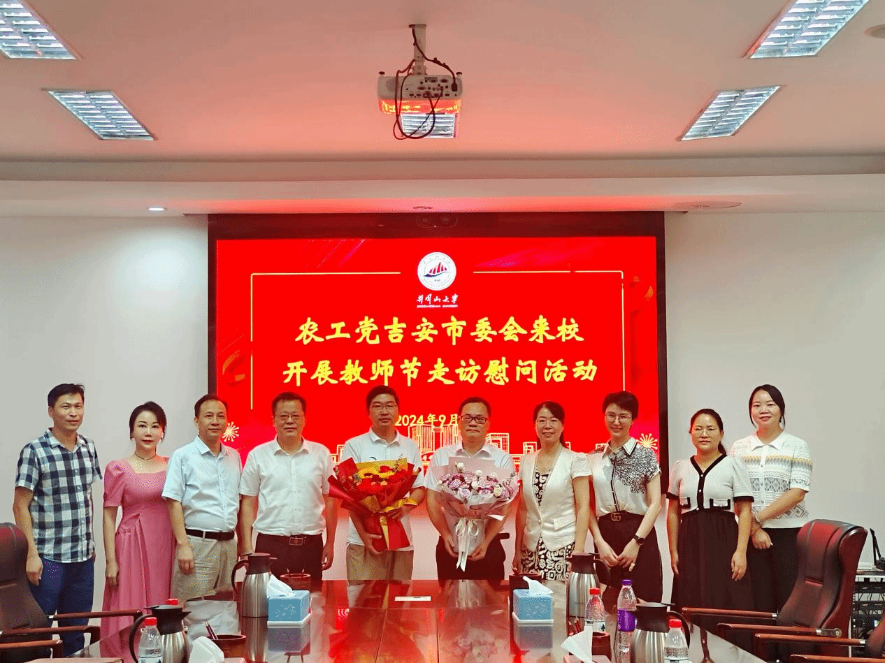 在第40个教师节来临之际,9月6日,吉安市政协副主席、农工党吉安市委会主委邱秀华一行来校走访慰问党员代表,并通过他们向学校农工党教师及教育工作者致以节日的问候和诚挚的祝福。校党委常委、统战部部长刘梁军,学校农工党教师代表、党委统战部全体人员参加了座谈会。