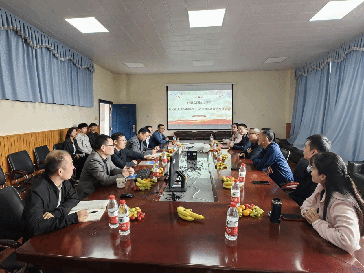 为庆祝井冈山大学66周年校庆,推动政法学院高质量发展,政法学院众多校友重返校园,一同回忆往昔情谊,展望学院未来发展。2024 年 10 月 28 日上午 9 时,政法学院在5栋401会议室举行了井冈山大学 66 周年校庆政法学院高质量发展大会,政法学院党委书记吴高平,副院长习剑平、欧阳晓安、王才章以及各位校友出席此次会议。