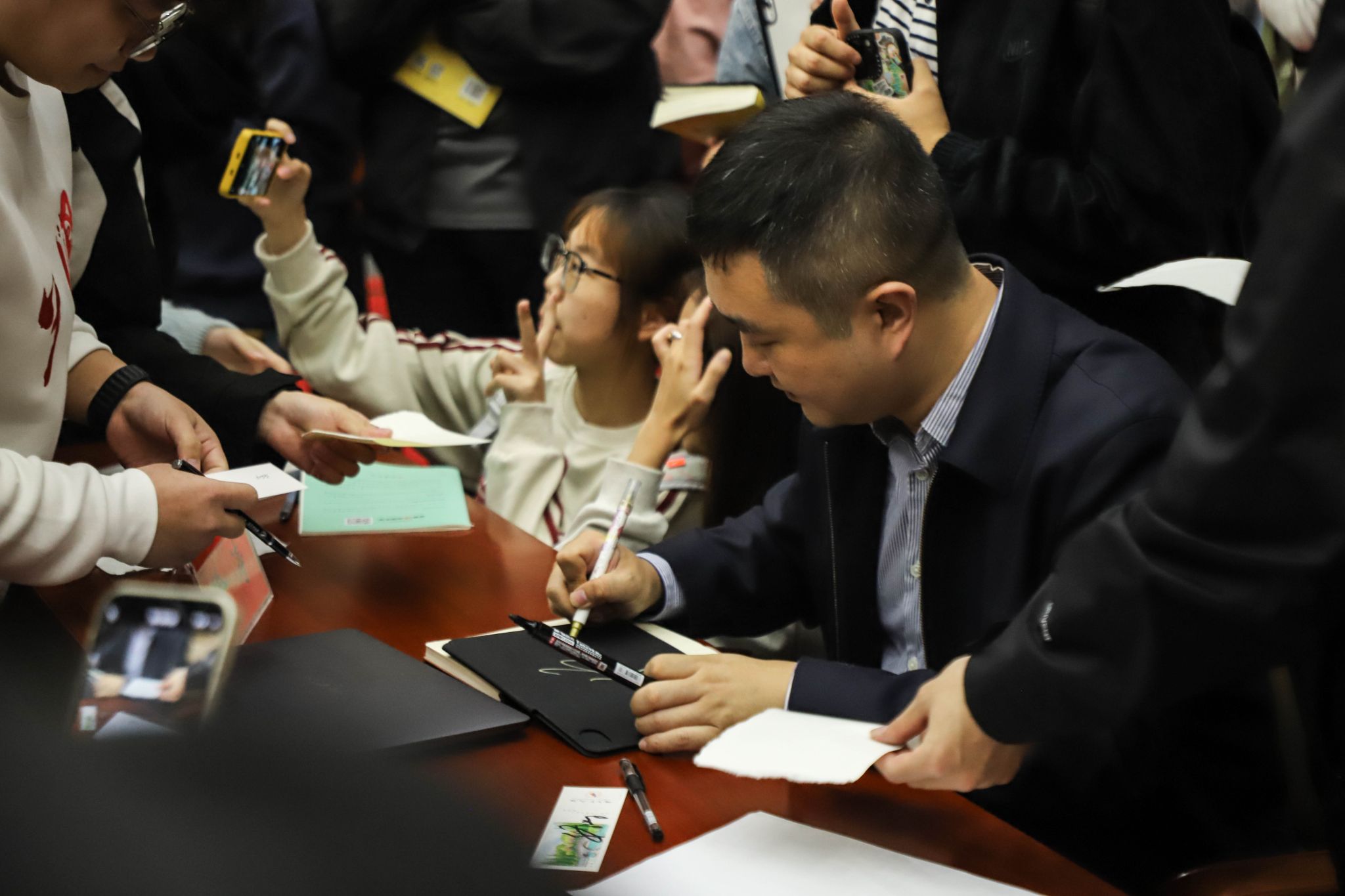为了让讲座更加生动有趣,徐涛老师还将考研学习与日常生活相结合,用通俗易懂的语言和生动的例子来解释复杂的考研知识点。他幽默风趣的讲解方式,不仅让学生们轻松掌握了知识,还让他们感受到了考研学习的乐趣。讲座结束后,学生们反响热烈,纷纷上前与徐涛老师合影签名留念。