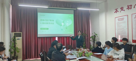 在作品展示环节,各参赛队代表通过PPT演示和现场讲解等方式,全方位介绍了各自参赛作品,充分展现了当代大学生对前沿科技的敏锐洞察力。其中,王馨月同学介绍的“便携式医疗影像AI辅助解译系统”项目备受瞩目,该项目针对当前社会关注的医疗问题,提出了一种全新的解决方案,并取得了初步的实验验证结果,赢得了在场老师的高度评价与认可。
