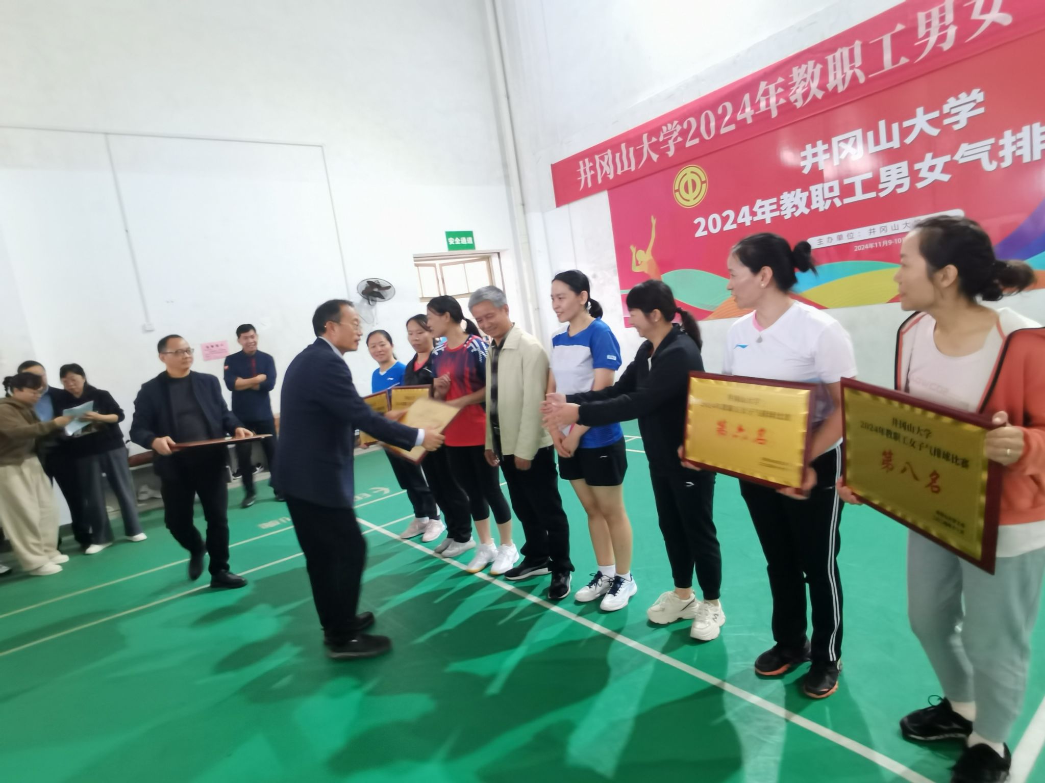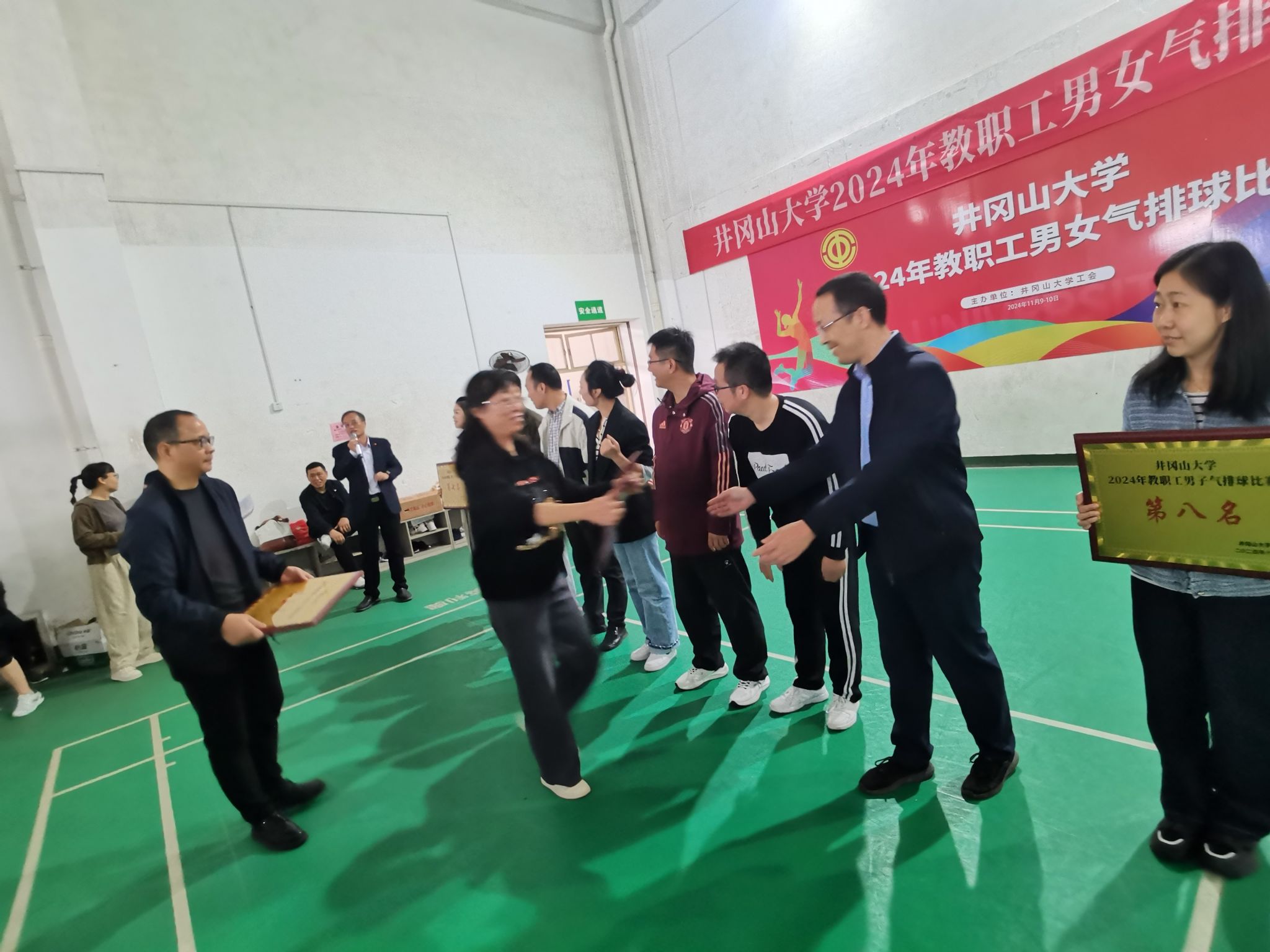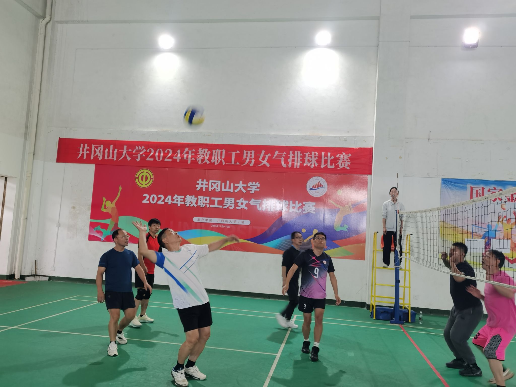 11月9日至10日,井冈山大学在校体育训练馆成功举办了2024年教职工男女气排球比赛。此次比赛旨在丰富校园文化生活,全面贯彻落实《全民健身计划纲要》,提高教职工体质健康水平,并促进校内各部门、各学院之间的交流与互动。