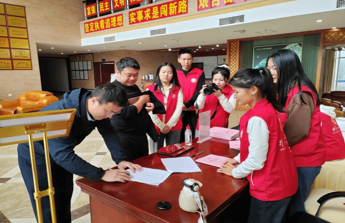 10月27日,井冈山大学校友会第二届理事会第二次会议和井冈山大学教育基金会一届理事会六次会议在我校学术交流中心召开。为促使会议顺利召开,校友社志愿者提前筹备,确保会议井然有序。在每一个环节中,志愿者们都展现出了他们的专业素养:礼仪组——热情迎接远道而来的校友,引导参会人员进入会场;签到组——耐心细致地登记校友信息,告知会议相关流程,发放会议指南;宣传组——会议和活动的记录者与拍摄者,用镜头记录下珍贵的瞬间,用笔触记录温馨的场景;后勤组——做好各学院校庆系列活动的汇总,协助做好教育基金会工作汇报PPT制作和现场播放,协助工作安排、会议结束后协助清理现场……一抹抹鲜艳的志愿者服闪耀在大厅各个角落,同学们各司其职,紧张而有序地工作,面对校友亲切地道声“学长学姐好”“欢迎校友回家”的话语,让归来的校友感受家一般的温暖。在志愿者的辛勤努力下,校友们积极分享交流,为会议的圆满召开提供了有力的保障。