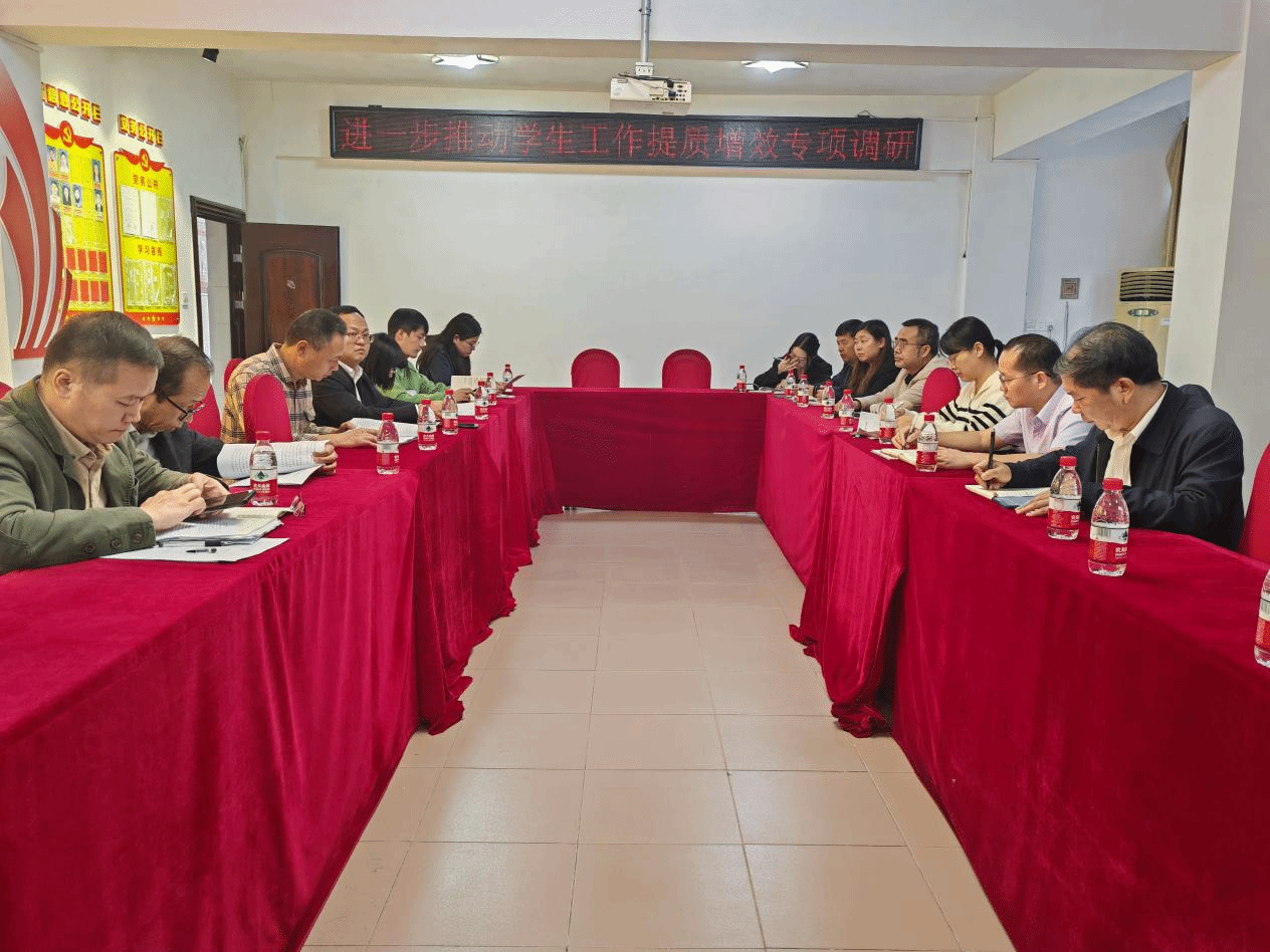 为做好学生工作,保障学校高质量发展,11月11日,学校召开2024年“进一步推动学生工作提质增效”专项调研,校党委常委、副校长敖四江出席会议并讲话,学生工作部(处)、校团委、保卫处主要负责人以及政法学院、马克思主义学院、人文学院、教育学院、外国语学院、艺术学院的党委书记、副书记以及教师代表参加会议。