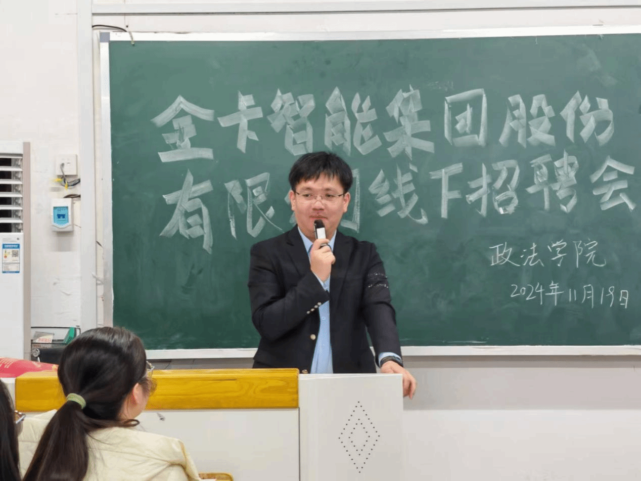 为积极促进毕业生就业,拓展毕业生就业渠道,进一步搭建学生与企业之间的桥梁,政法学院于2024年11月19日晚上6时30分,在五栋305教室举办金卡智能集团有限公司线下招聘宣讲会。此次宣讲会由金卡智能集团有限公司人力资源专员江旭标主讲,政法学院2025届毕业生参加。