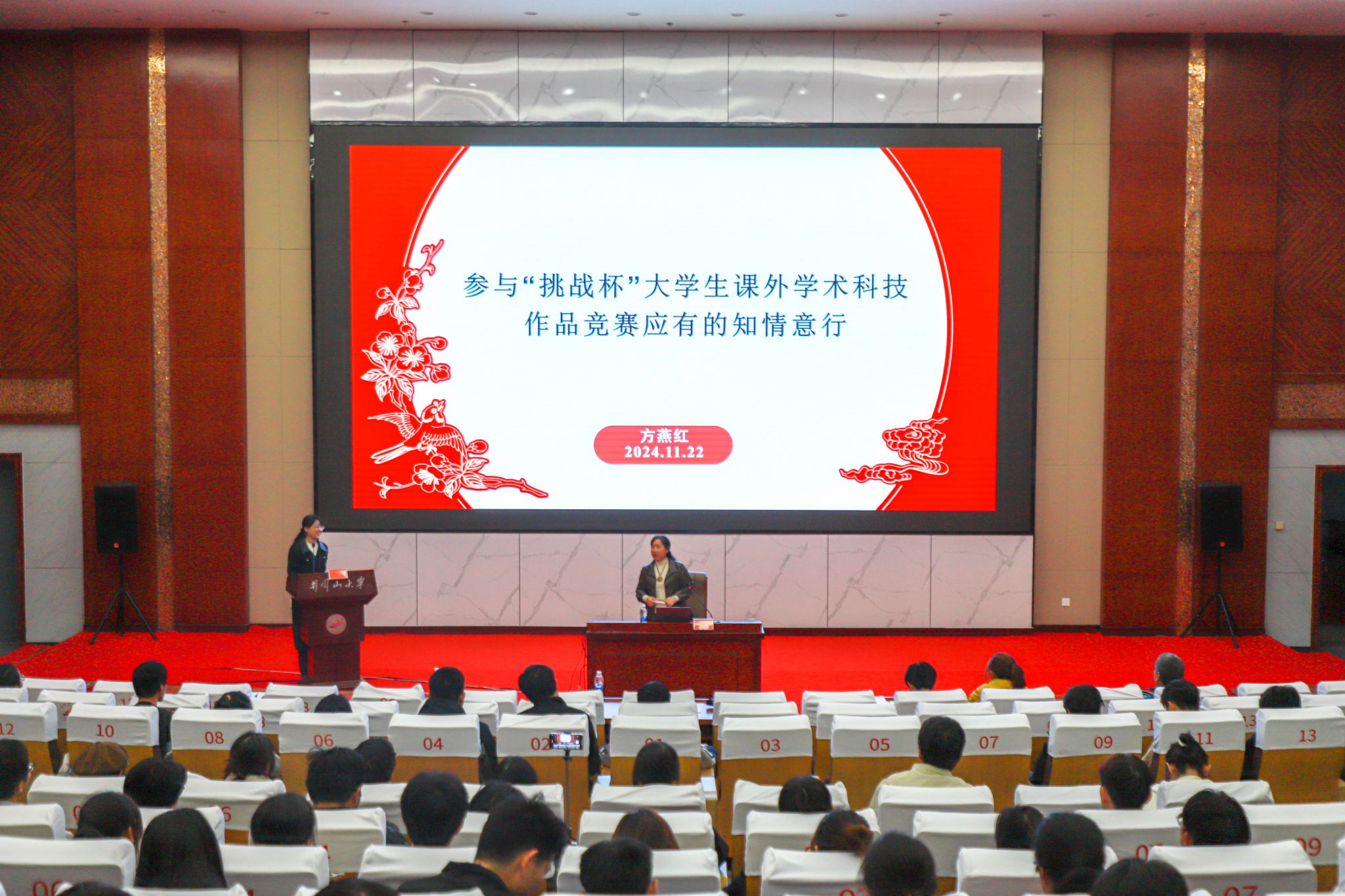 为进一步提升学生的科研能力和创新意识,提高同学们“挑战杯”竞赛作品撰写能力和提升作品质量,11月21日和22日晚,校团委在新图书馆报告厅举行“挑战杯”竞赛培训会,江西财经大学陈胜祥教授和华南师范大学方燕红老师受邀作专题培训,培训会由校团委书记肖晓主持。