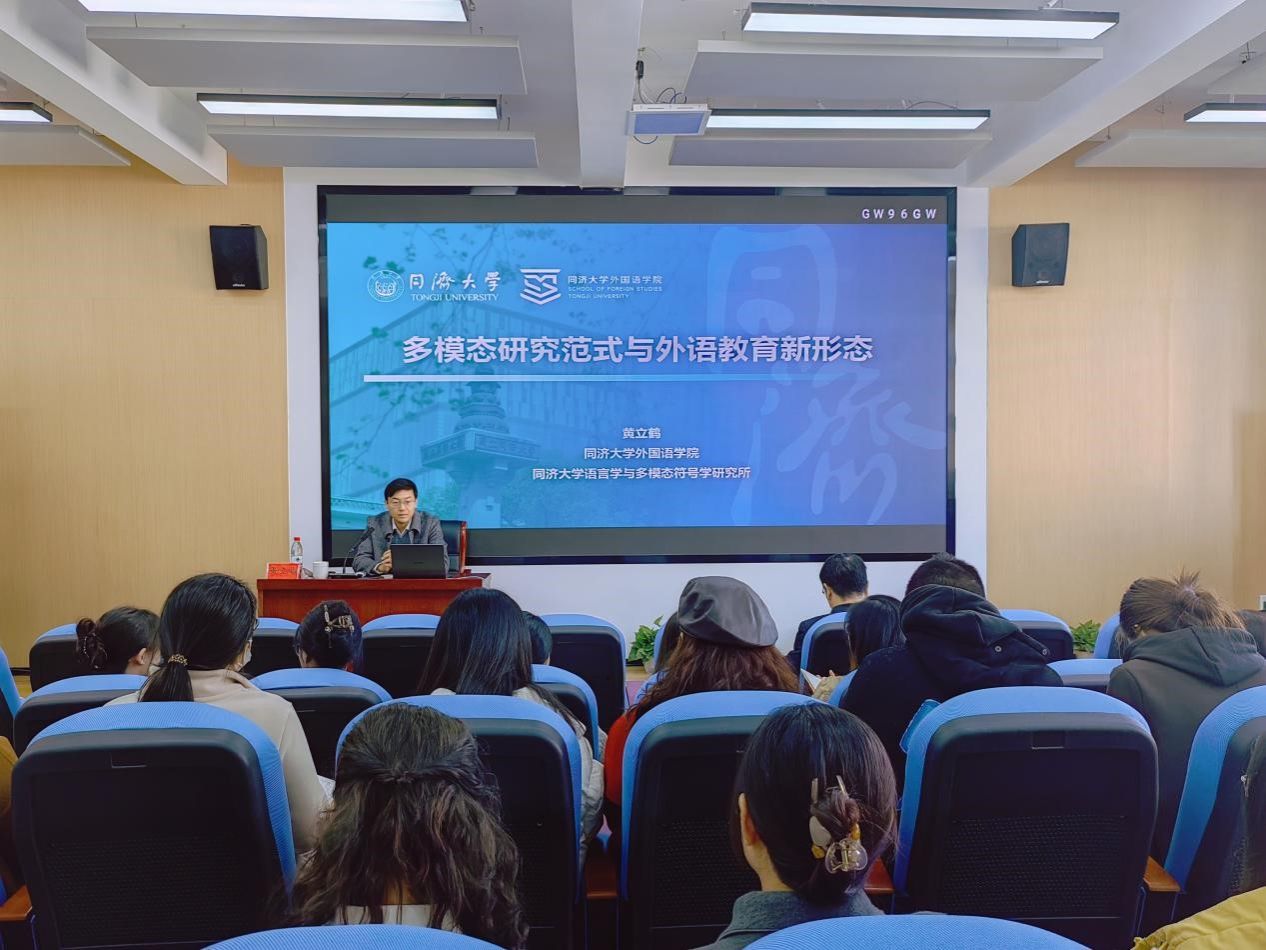 按照学校同济学术周活动的统一安排,12月2日,同济大学教授、博士生导师黄立鹤莅临外国语学院,为师生带来一场题为“多模态研究范式与外语教育新形态”的学术讲座。