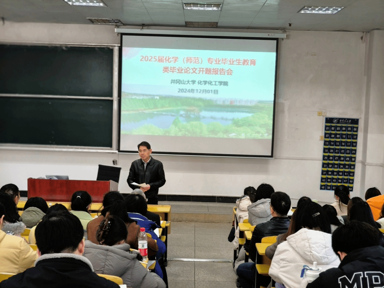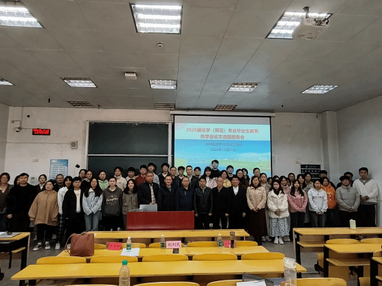 为了更好地衔接化学(师范类)专业学生培养的“三习”和毕业论文环节,有效提升人才培养质量,12月1日上午,化学化工学院在5栋104教室召开了2025届化学(师范类)专业毕业生教育类毕业论文开题报告会暨2026届选题指导会。江西师范大学党委常委、副校长刘利民,学院院长陈文通,教务处副处长何德勇,学院副院长张定娃、刘诚,应用化学研究所副所长易绣光,教育类毕业论文指导教师及全体2021级和部分2022级化学(师范类)专业学生共计150余人参加了此次会议,会议还特邀吉安县第二中学欧阳群昌、吉安外国语实验学校王惠群、井冈山大学附属中学熊珉三位一线教育教学专家亲临指导,本次会议由学院化学系副主任叶慧贤主持。