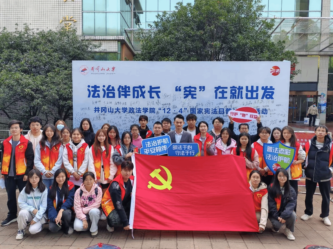 2024年12月4日是第十一个国家宪法日。为积极响应国家号召,弘扬宪法精神,普及法律知识,国家宪法日当天上午,由井冈山大学政法学院主办、政法学院学生第一党支部承办的“法治伴成长,‘宪’在就出发”国家宪法日普法宣传活动在学生社区开展,掀起宪法学习宣传新热潮。
