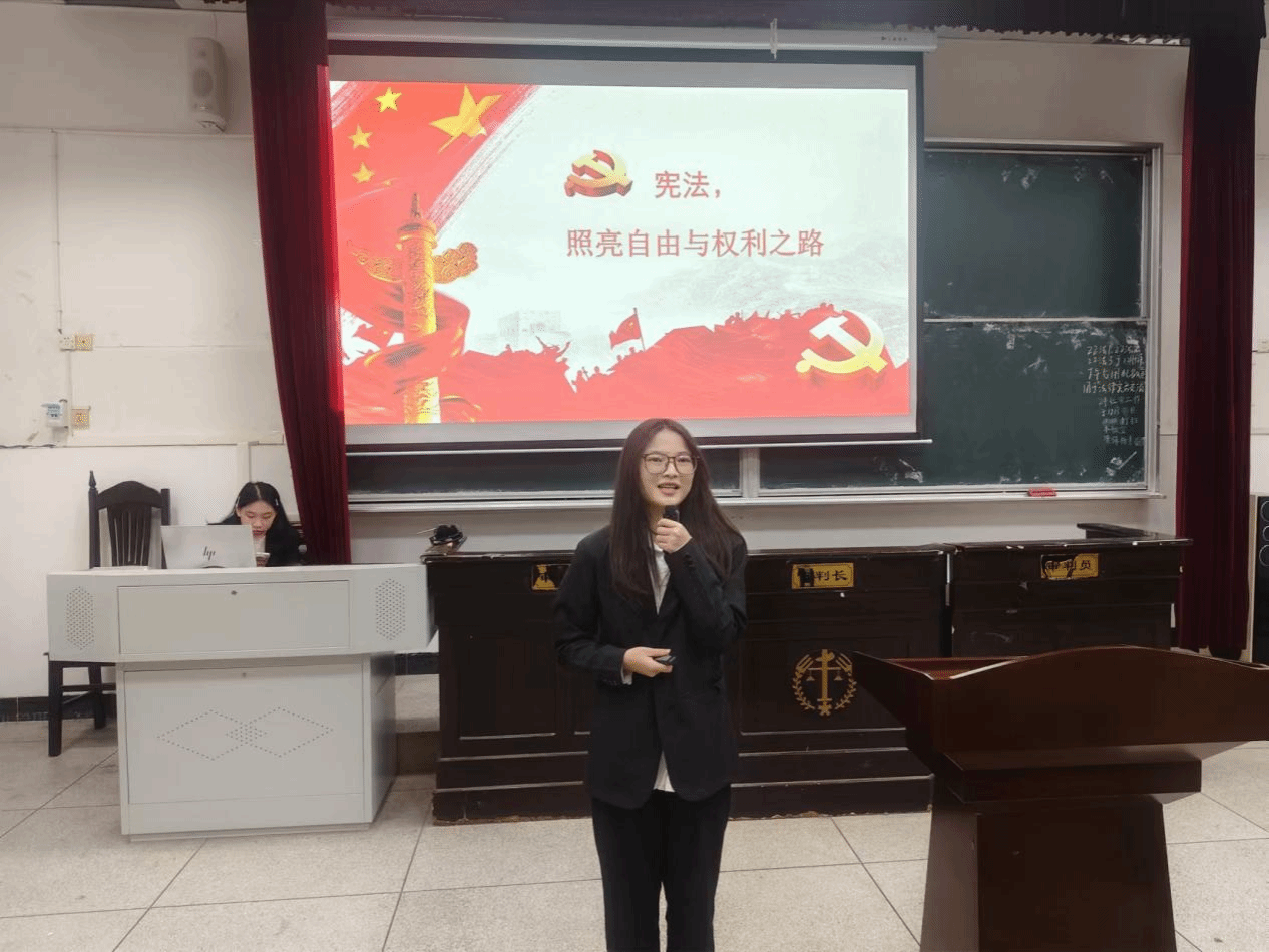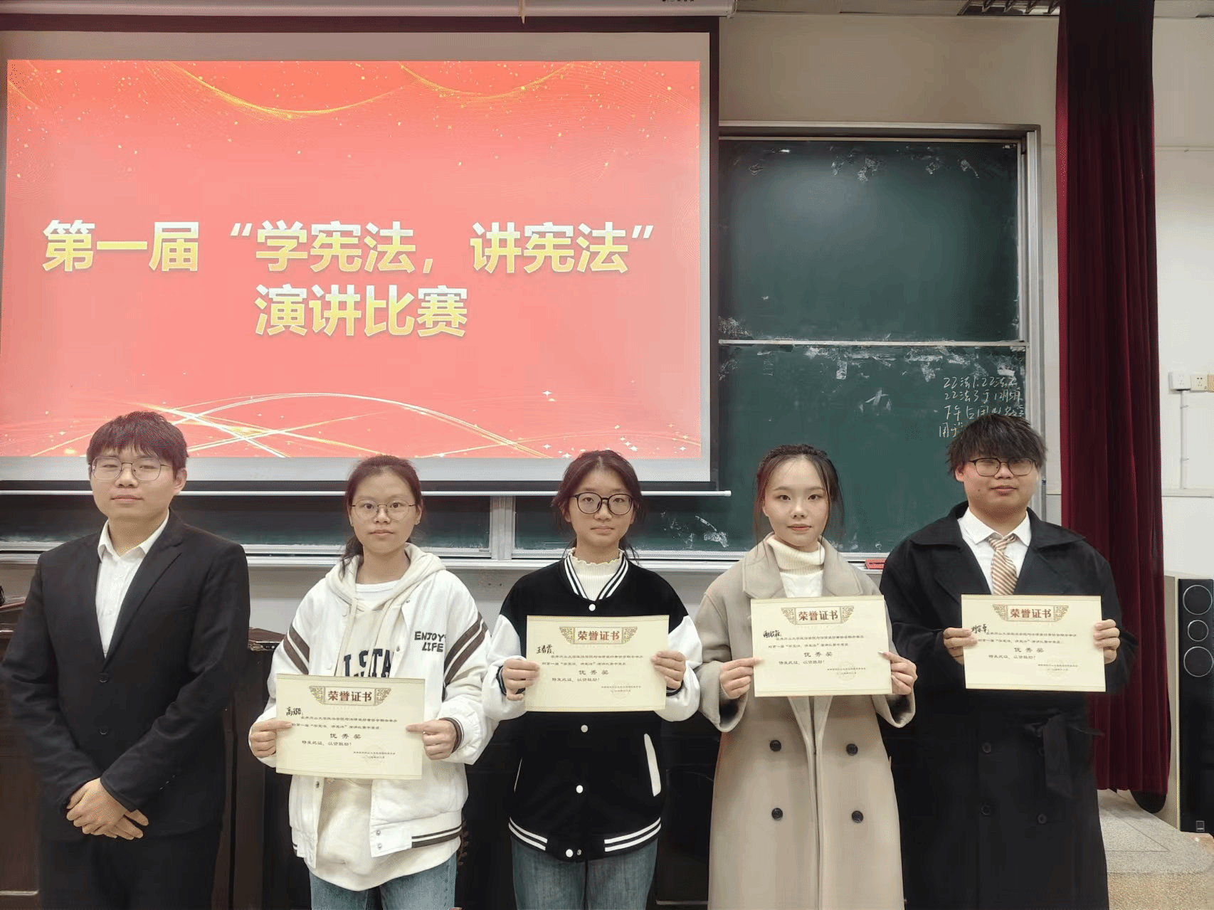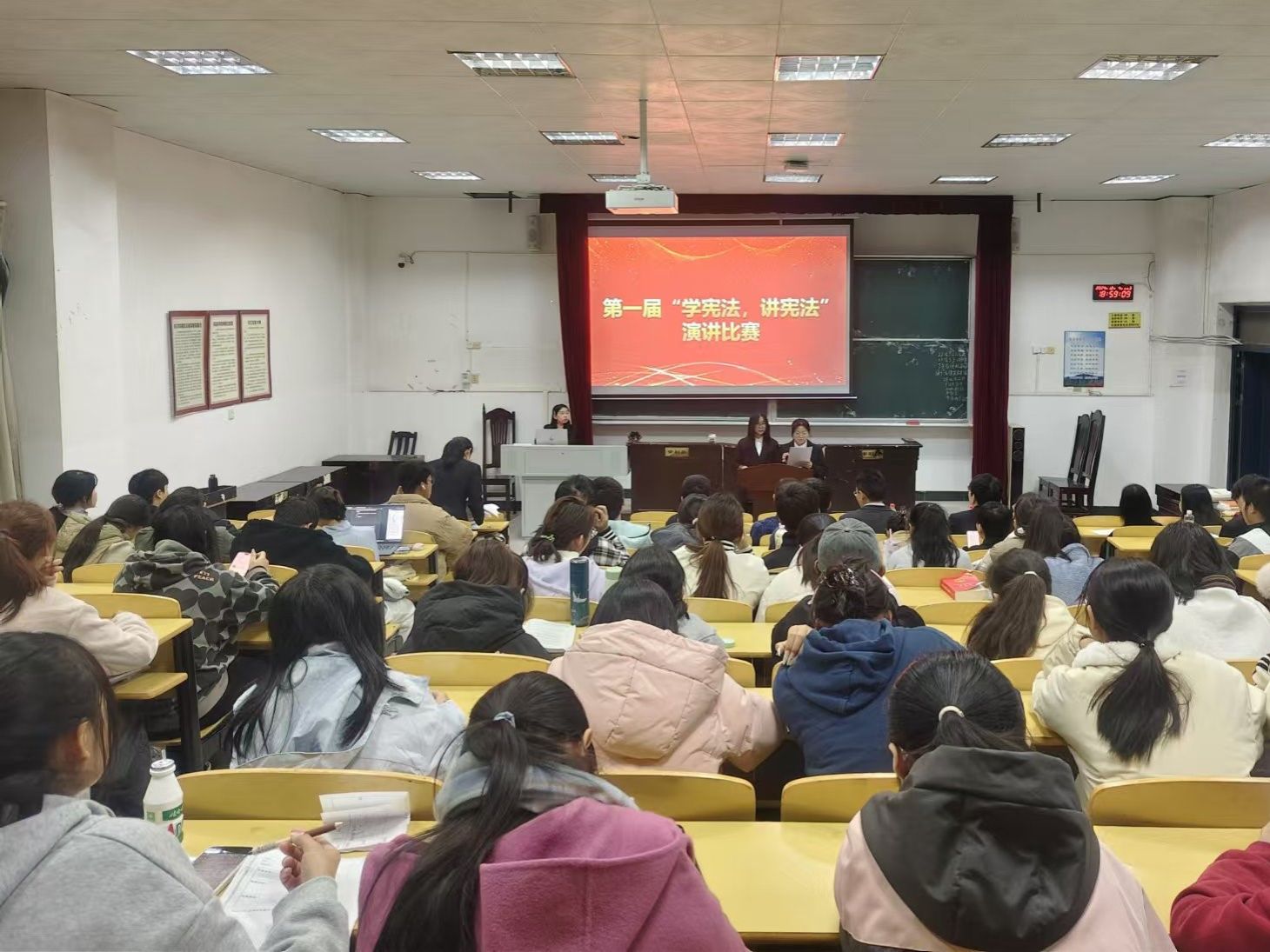 为深入学习贯彻习近平法治思想,弘扬宪法精神,12月4日晚7时,政法学院联合法律爱好者协会于5栋408教室举行第一届“学宪法,讲宪法”演讲比赛。政法学院副院长欧阳晓安,许士友博士,团委副书记、学生科副科长肖文海以及江西律星律师事务所律师王若宇担任本场比赛的评委。
