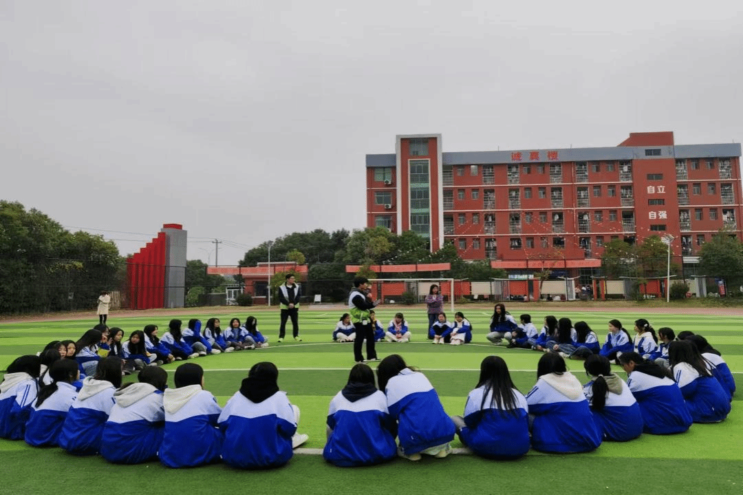 第二阶段,大学生朋辈心理志愿者们带领班级同学来到会堂、操场等空旷地,开展了“心有千千结”、“数字炸弹”、“抱团取暖”、“大树与松鼠”等多种多样的心理团辅游戏。一个个“结”在同学们脑中解开了千种花样,一个个拥抱在心与心之间搭起了座座爱的桥梁,一个个在人群中激起了声声欢乐的水花,一张张满载心意与祝福的贺卡在心中蕴起了阵阵温暖的风。在一个个欢乐有趣的心理团辅游戏中,同学们逐渐敞开心扉,放松心情,与志愿者和班级同学欢乐互动,尽情体验积极情绪,同时增强了团队合作、应变与抗挫的能力。