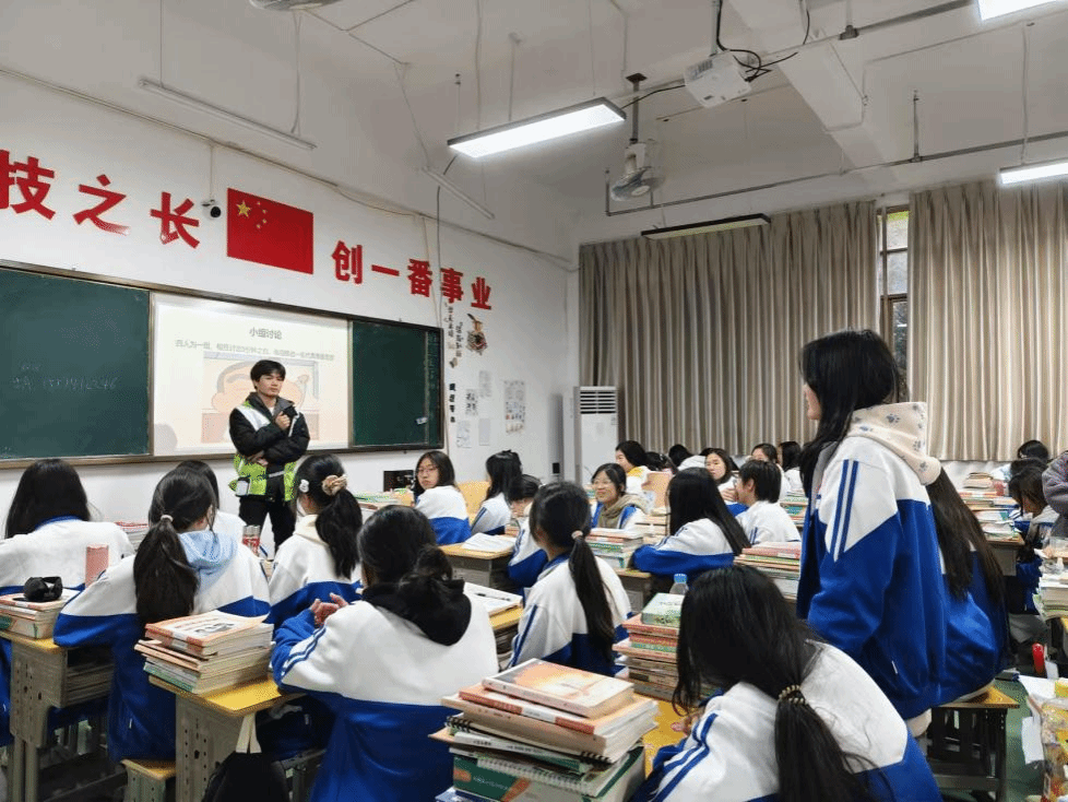 活动分为两个阶段。第一阶段由大学生朋辈心理志愿者为同学们开展有关“情绪”、“青春期”、“自信”、“挫折”等主题的心理健康知识微讲课。课堂上,志愿者们深入浅出、风趣幽默的讲解,同学们听得津津有味。互动环节,同学们积极参与,踊跃发言,课堂氛围轻松而和谐。