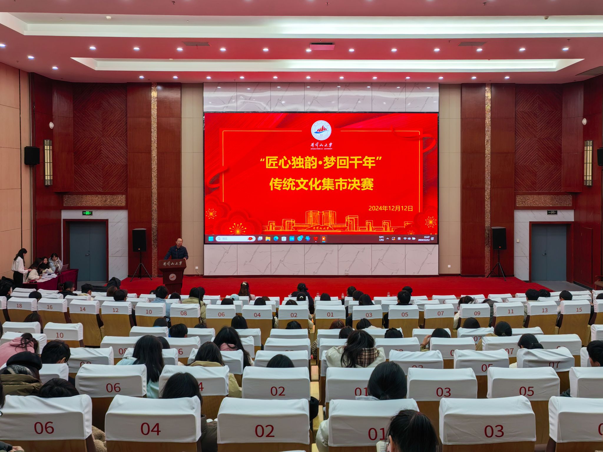 为推动中华传统文化与现代技术相融合,使中华优秀传统文化焕发出新的生机与活力,促进青年学子更好地感受与传承中华优秀传统文化千年的魅力,12月12日下午,由校团委主办,人文学院与中医药学院团委承办的“匠心独韵,梦回千年”传统文化集市展示决赛在新图书馆报告厅举行。庐陵文化研究中心副主任丁功谊,生命科学学院党委副书记何旭梅,外国语学院党委副书记李红军,数理学院党委副书记涂凰,人文学院历史系专任教师毛若楠出席担任本次比赛评委。