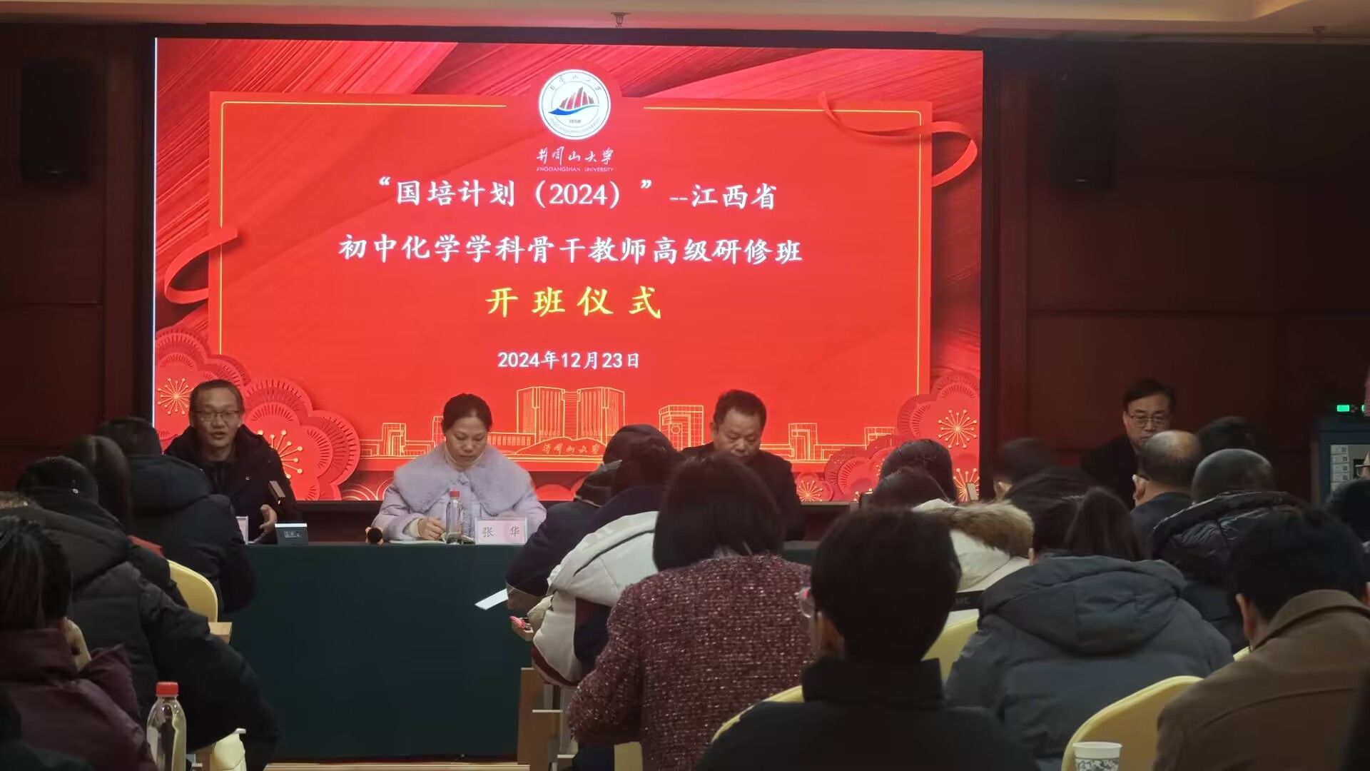 12月23日上午,由井冈山大学化学化工学院承办的“国培计划(2024)江西省初中化学学科骨干教师高级研修班”开班仪式在井冈山大学新学术交流中心隆重举行。本次培训班旨在提升初中化学教师的专业素养与教学水平,推动我省化学教育创新发展,为基础教育质量的提升注入强大动力。来自全省各地的八十名初中化学骨干教师齐聚一堂,共同开启这场专业成长的学习之旅。开班仪式由井冈山大学应用化学研究所副所长易绣光主持。