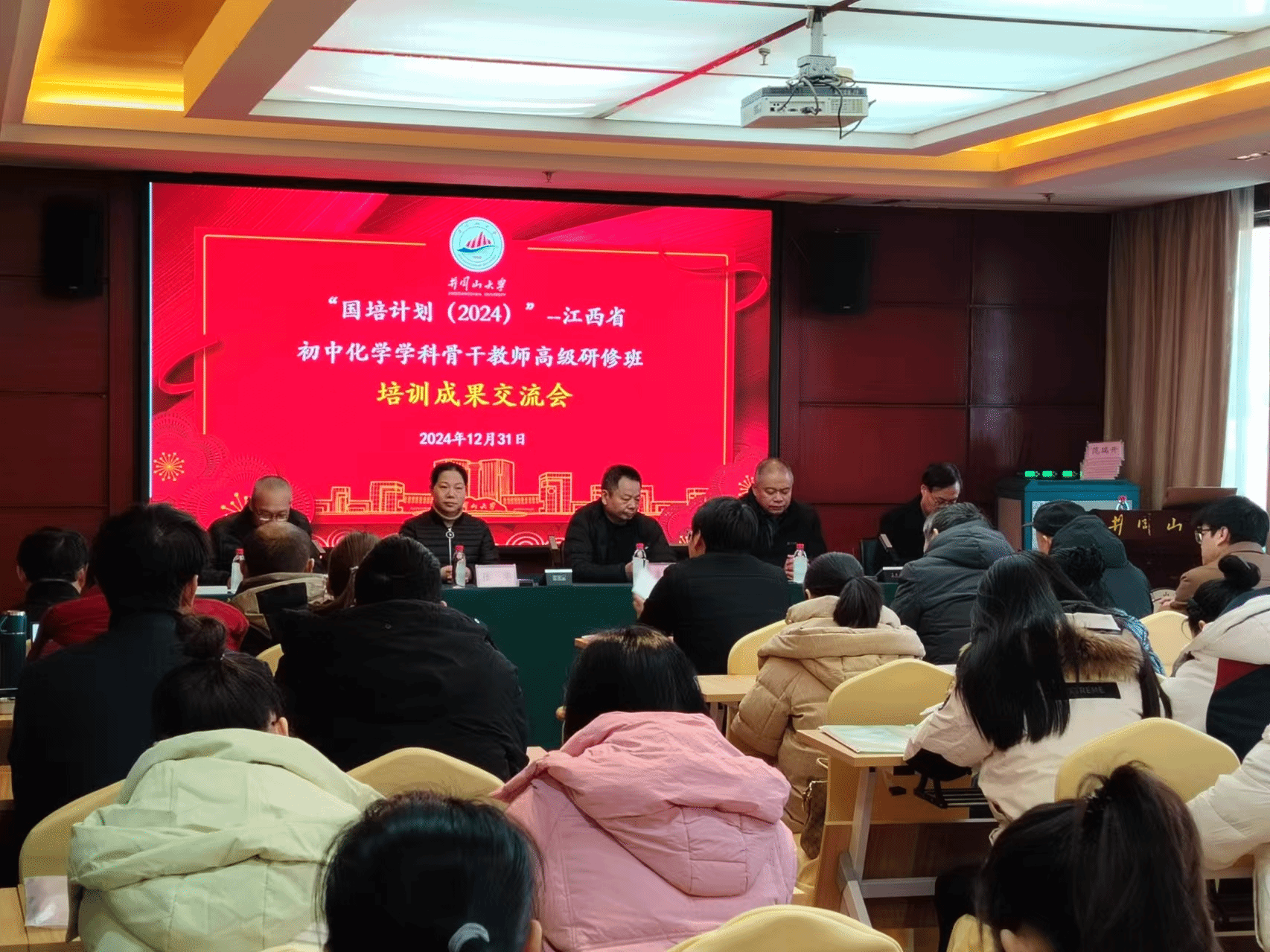 12月31日,化学化工学院在井冈山大学新学术交流中心举行了“国培计划(2024)江西省初中化学学科骨干教师高级研修班”结业典礼,化学化工学院党政班子全体成员参加了结业典礼。结业典礼由井冈山大学应用化学研究所副所长易绣光主持。