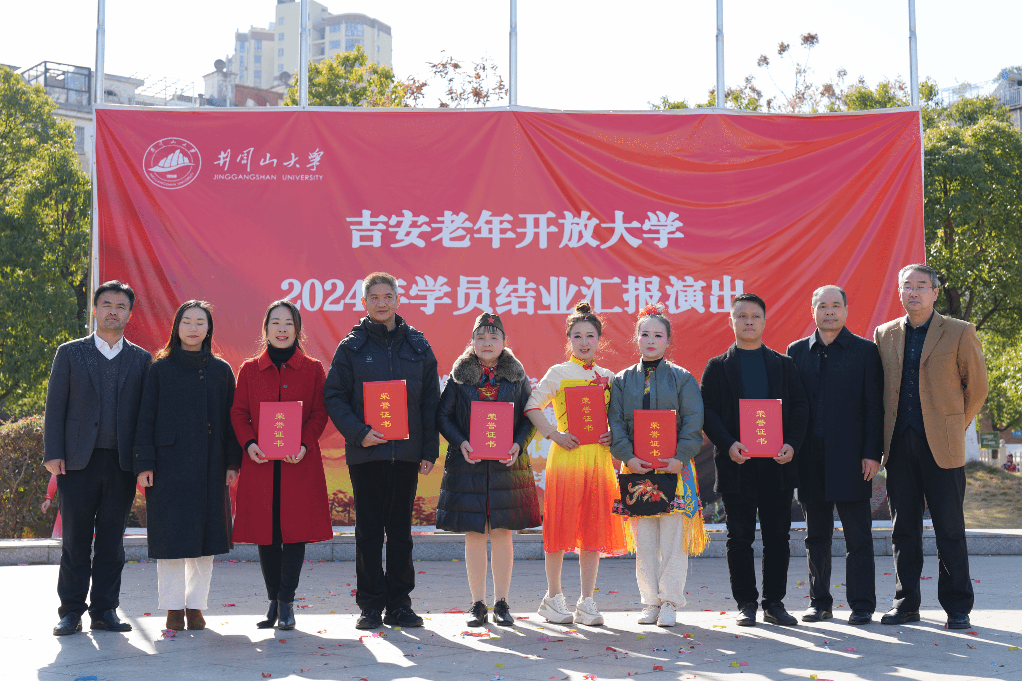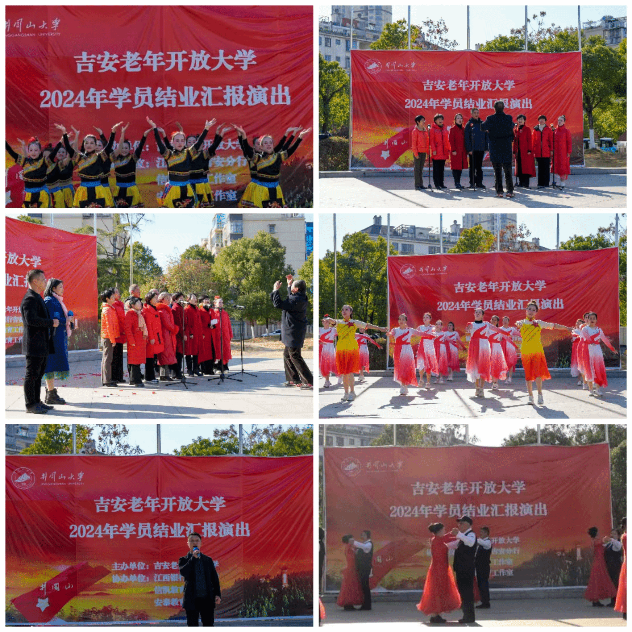 1月10日下午,吉安老年开放大学在罗湖社区举办了一场主题为“扬教学硕果,耀银龄华彩”2024 年兴趣班学员结业汇报演出活动。井冈山大学直属单位党委书记马于强,井冈山大学继续教育与培训学院院长、吉安老年开放大学校长贺晓斌出席,井冈山大学继续教育与培训学院院长、吉安老年开放大学主要负责人出席。
