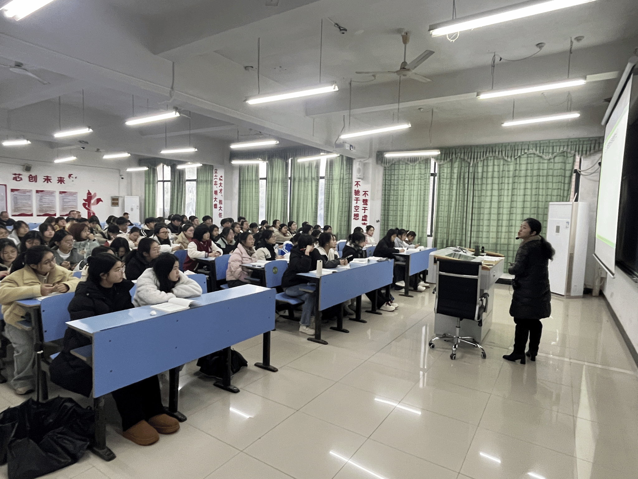石立君老师课堂上以“担当复兴大任,成就时代新人”为主题,从理论阐释与实践案例结合入手,通过“大学是什么?”“《思想道德与法治》课是一门什么课?”“青年的责任与使命是什么?”“青年如何承担新使命”四个核心问题引发学生思考。课堂上,石老师引入了许多热点话题,将抽象的理论知识具象化为可感知、可践行的行为准则,展现了思政课“讲深、讲透、讲活”的实践要求。课程设计紧扣时代脉搏,充分融合了国家战略、法治精神与青年成长,赢得了师生们的广泛赞誉。