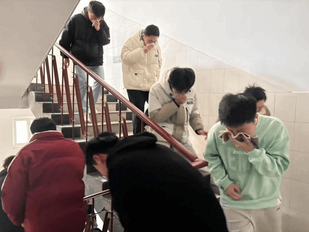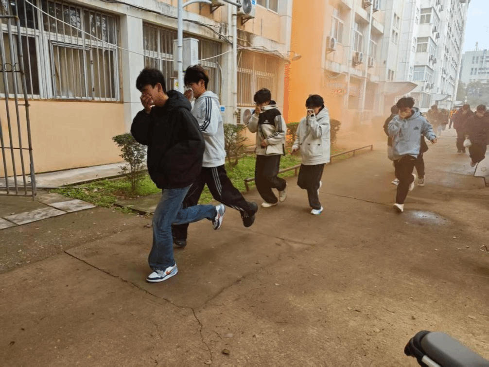 演练模拟学生宿舍突发火情场景。随着演习正式启动,现场瞬间浓烟弥漫。疏散过程中,同学们严格遵循 “弯腰、低姿、湿毛巾捂口鼻” 的标准动作迅速撤离。在楼梯口、走廊等关键点位,老师们与工作人员坚守岗位,有条不紊地引导、指挥,全力避免拥挤与踩踏事故发生,确保全体人员依照预定疏散路线,快速且有序地撤至安全区域。各班随即开展人数清点工作,整个演练流程紧张有序,师生配合默契,充分彰显出极高的应急反应水平,圆满达成预期效果。