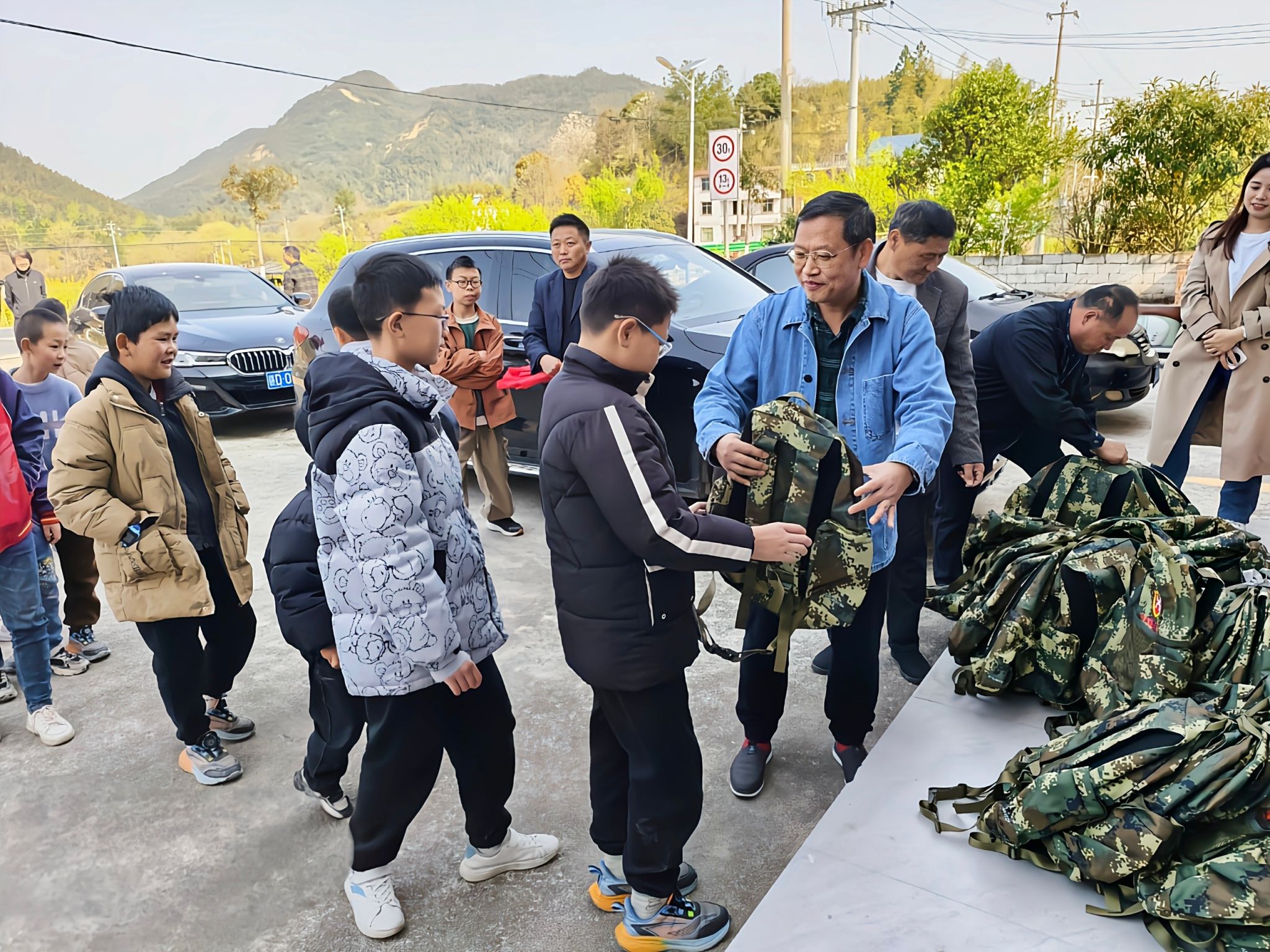 易九桂代表井冈山大学教育基金会向该村的留守儿童送上了由广州校友会校友张春林捐赠的65个书包。这些书包不仅为孩子们提供了学习必需品,更传递了社会各界对他们的关爱。
