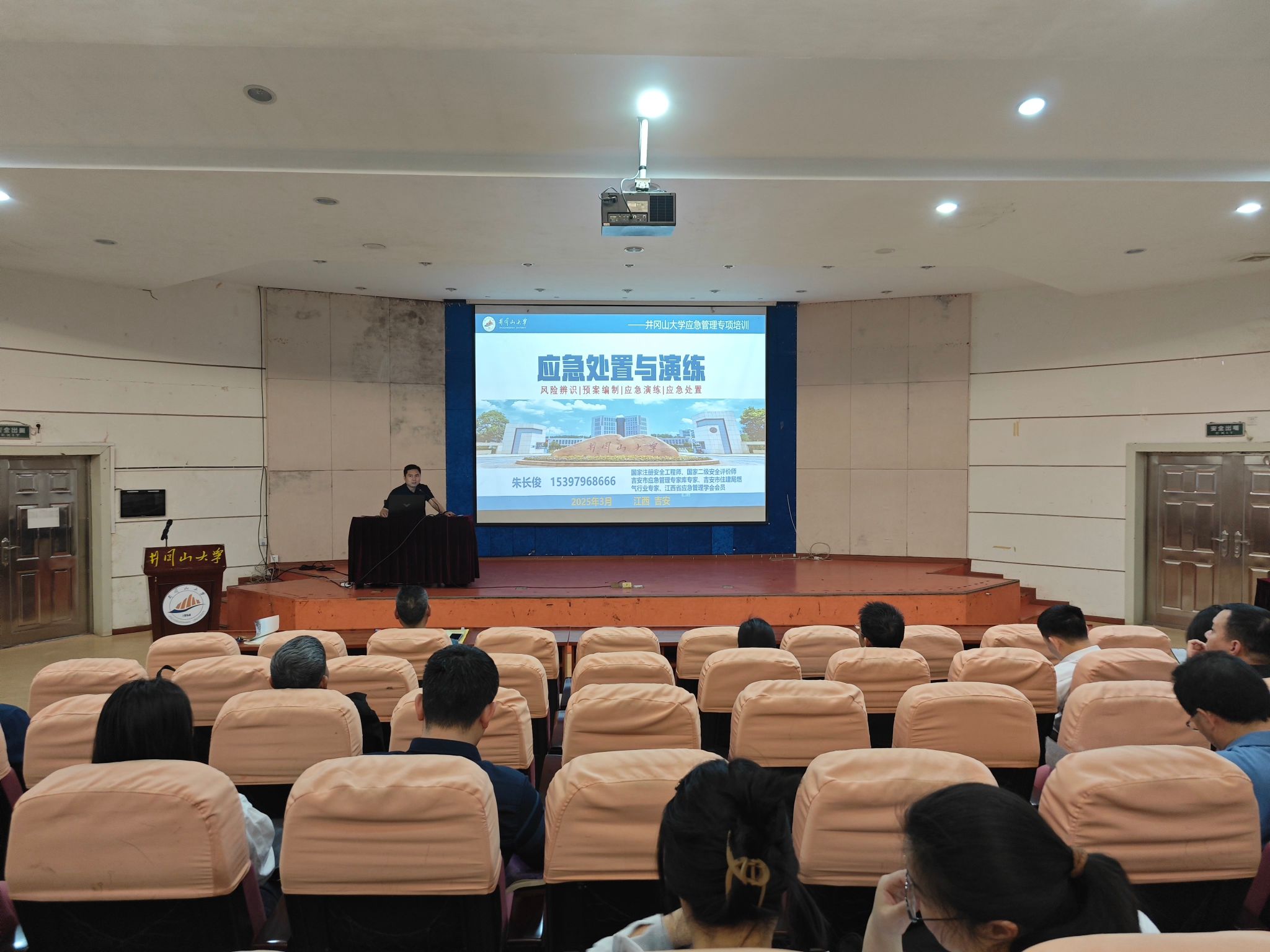 朱长俊专题授课从如何做好应急风险分析、危险性评价、风险分级和高校常见的突发事件处置,预案编制的目的、要求、原则、程序及预案的内容,应急演练的目的、分类、实施、评估及如何组织开展突发事件应急处置进行了深入浅出的讲解,对学校各部门单位和干部教师做好安全风险辨识、预案编制和组织开展应急演练和应急处置能力得到了进一步提升。(文/图:吴新年 审核:黄赣生)